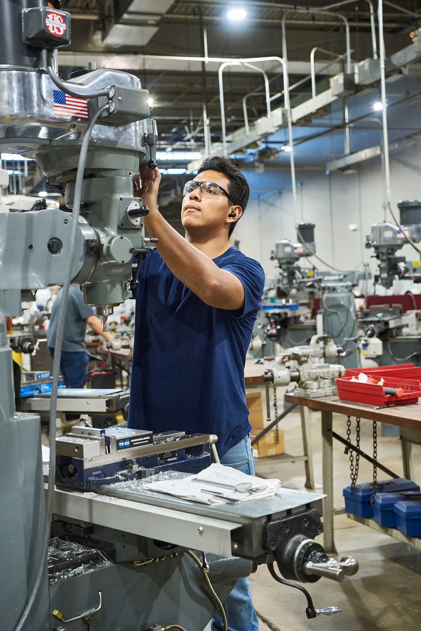 德克薩斯州立技術學院韋科校區精密機械專業的學生正在操作數控銑牀。
