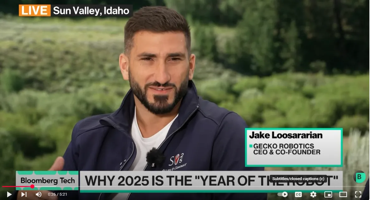 Gecko Robotics首席執行官Jake Loosararian做客彭博科技欄目,講述人工智能與機器人技術的最新進展。