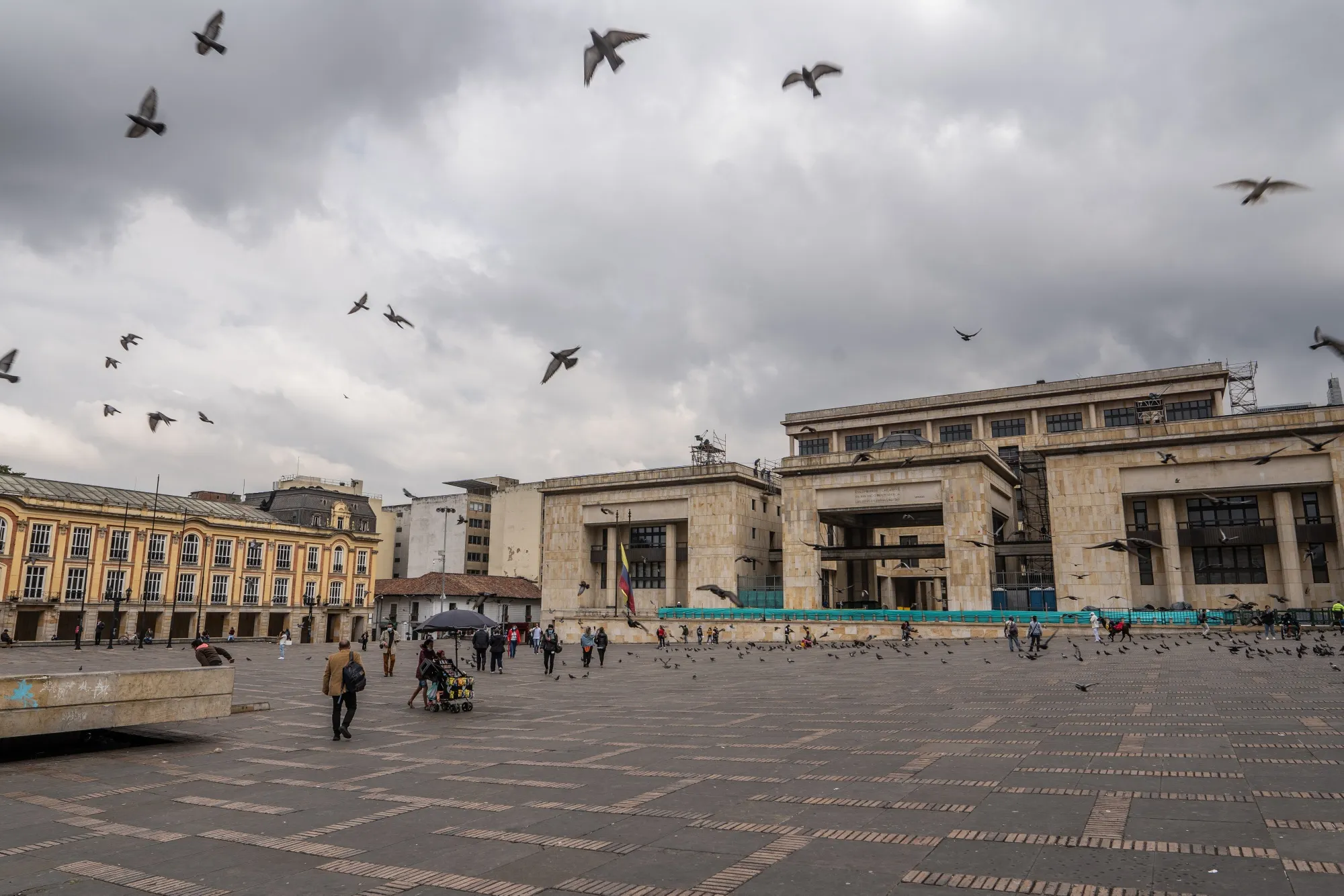 哥倫比亞波哥大玻利瓦爾廣場上的行人。