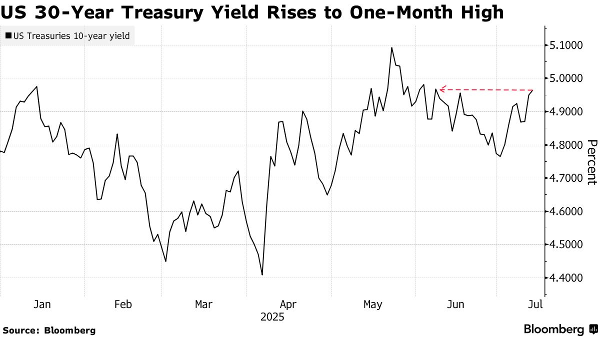 此番波動部分受到其他市場聯動影響,全球投資者對各國政府控制財政赤字的能力日益擔憂。但在美國,投資者正聚焦週二公佈的6月消費者價格指數,部分華爾街策略師預計該數據將反映前總統特朗普貿易關税政策的影響。