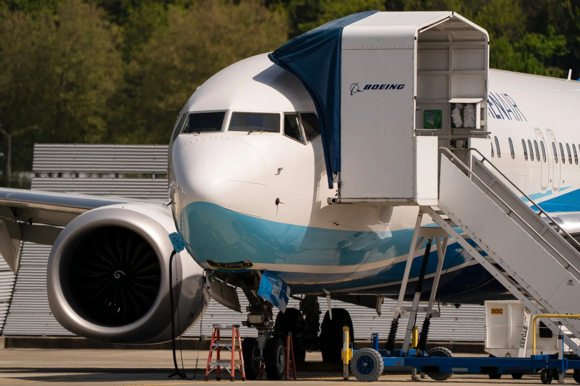 一架原定交付廈門航空的波音公司737 Max 8飛機停放在華盛頓州西雅圖的波音機場。