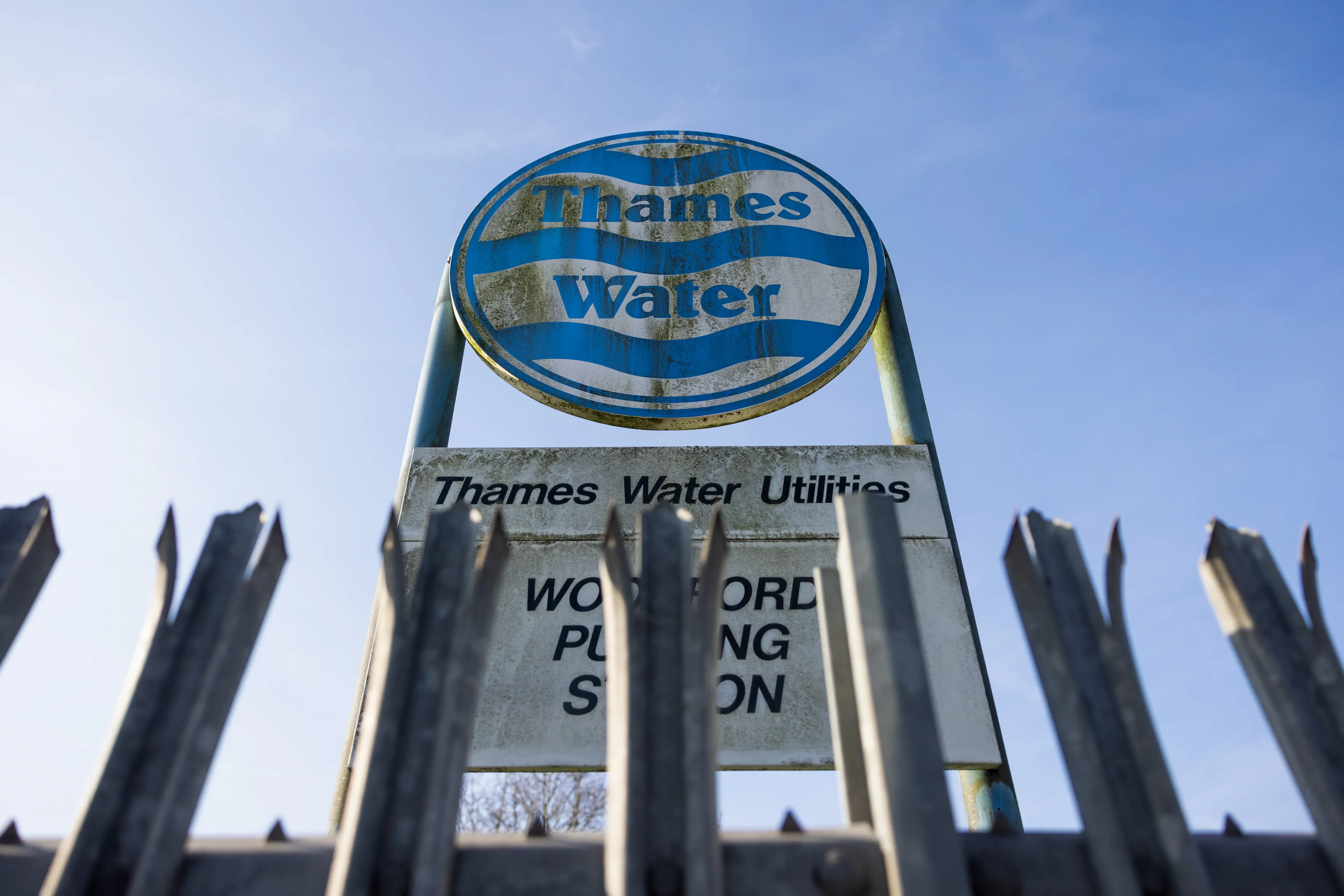 倫敦泰晤士水務公司運營的南伍德福德泵站入口處的標誌。攝影師:克里斯·拉特克利夫/彭博社