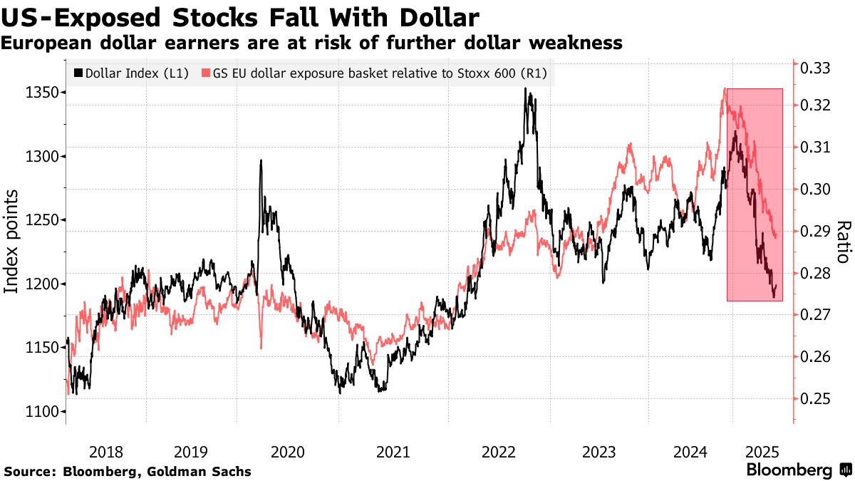 儘管美元近日企穩,但多數機構預期其將進一步走弱。高盛集團策略師彼得·奧本海默團隊預測美元將進入長期貶值通道,這會給歐洲企業盈利帶來逆風。