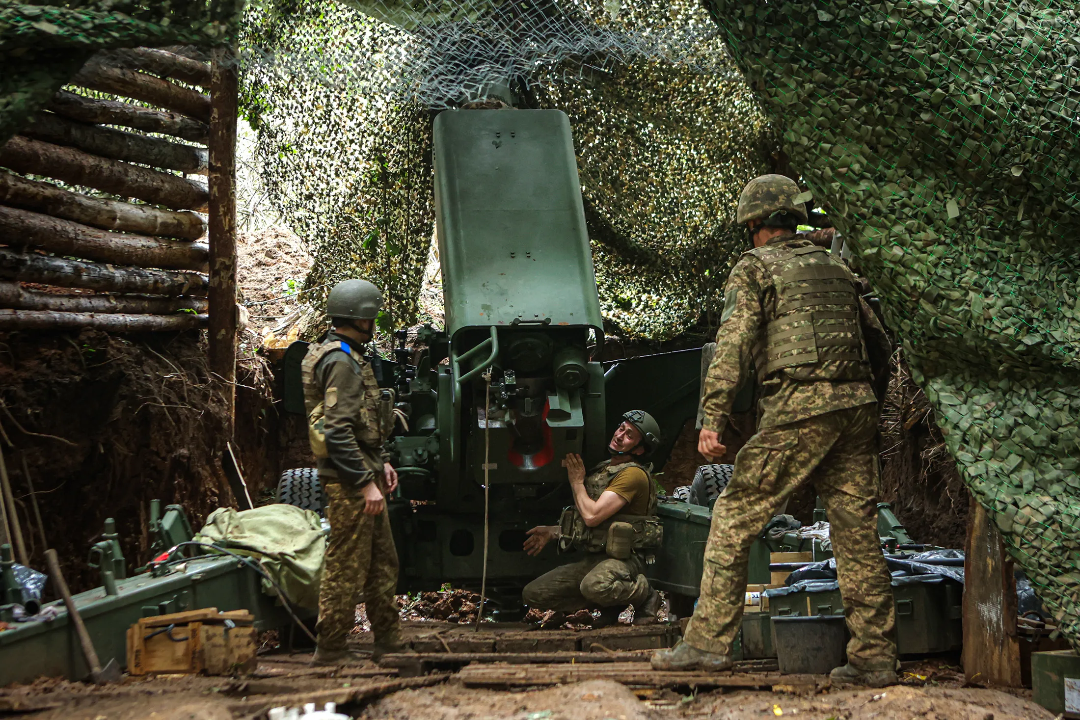 7月3日,烏克蘭士兵在哈爾科夫地區準備火炮裝置。