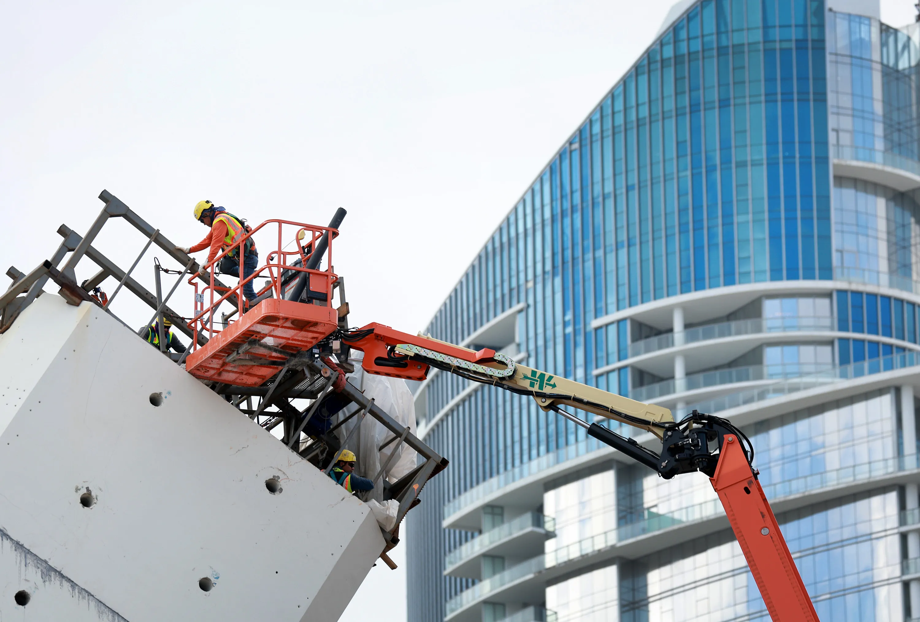 一名建築工人正在參與邁阿密"標誌性大橋"的施工建設。