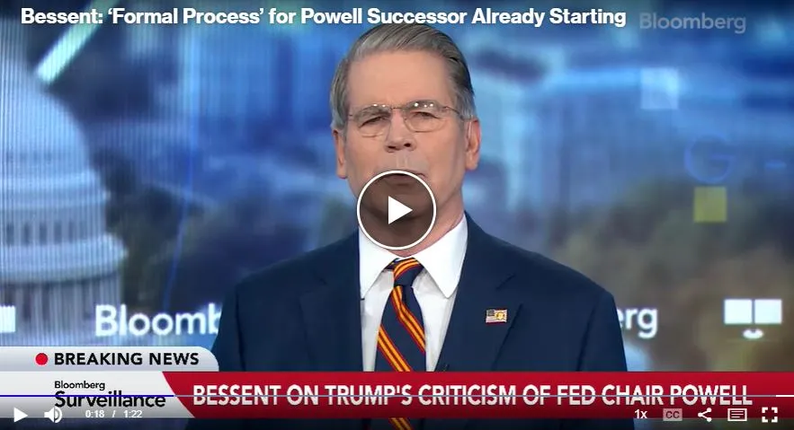 財政部長斯科特·貝森特建議美聯儲主席傑羅姆·鮑威爾在2026年5月主席任期結束時應辭去央行董事會職務。