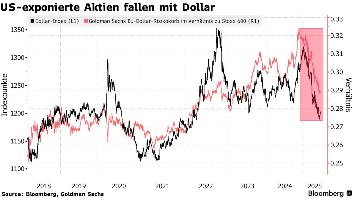 高盛統計的一組美元收入佔比高的歐洲股票今年表現比斯托克歐洲600指數低約9個百分點。該組合包括德國電信、羅氏、英國石油、英美煙草和依視路陸遜梯卡等公司。