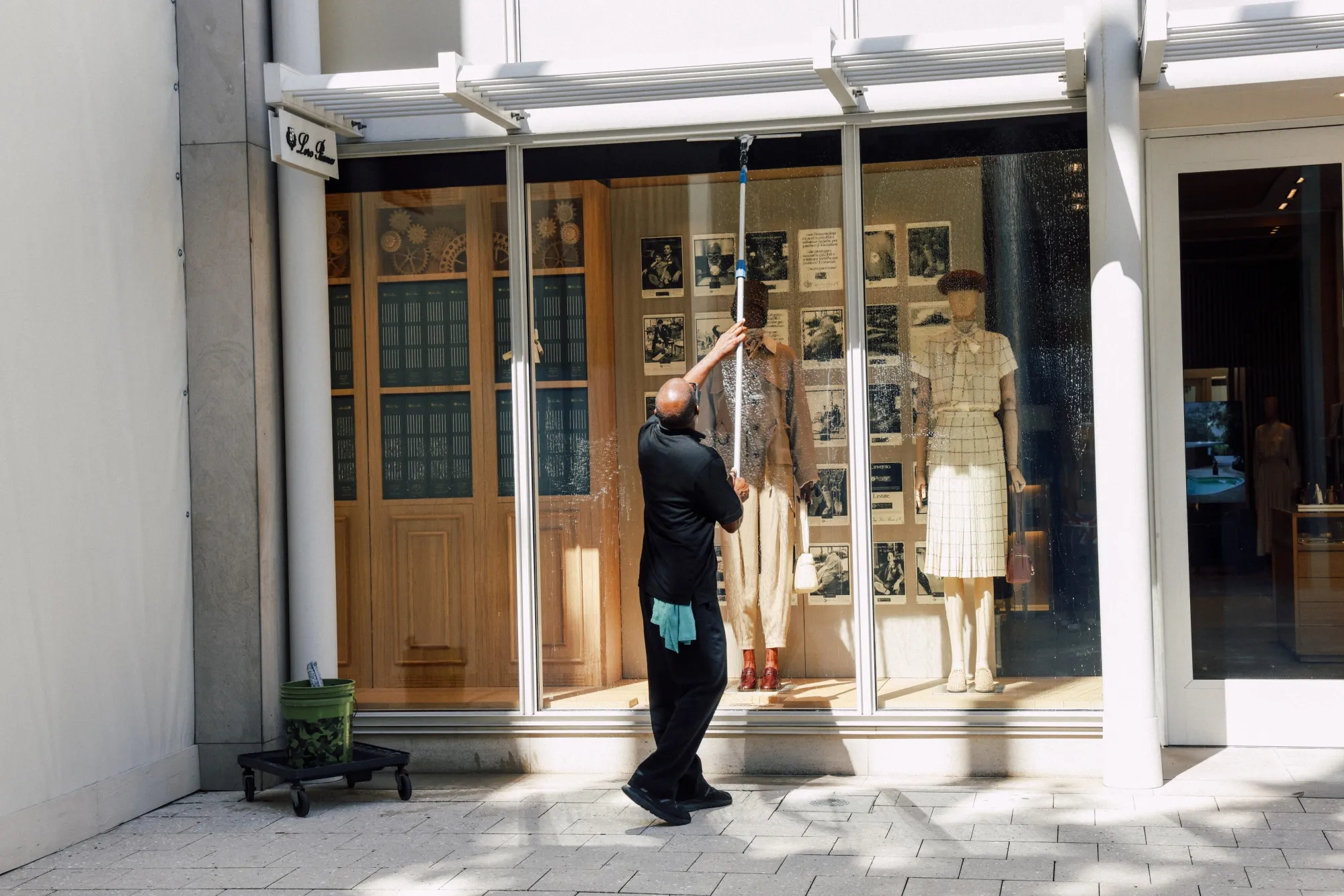 一名工人正在清潔邁阿密Loro Piana店鋪的櫥窗。攝影師:Ysa Perez/彭博社Loro Piana案件的進展目前取決於法院的後續審理。