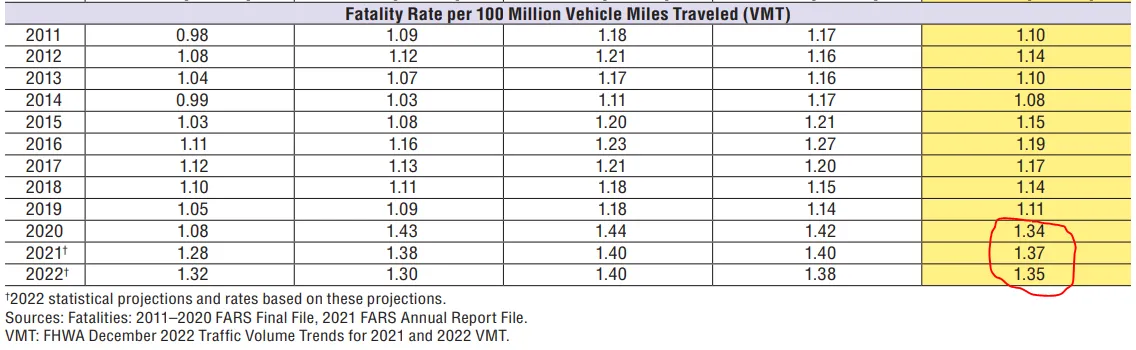 **附註:**我一直用車禍來比喻通脹現象。但這裏也有字面上值得關注的現象。根據美國國家公路交通安全管理局數據,2020至2022年期間交通事故死亡率顯著飆升。