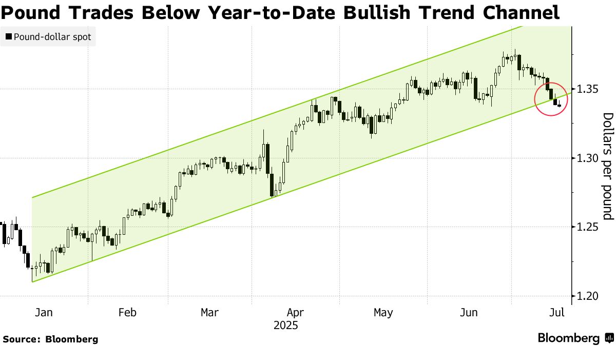 包括瓦倫丁·馬裏諾夫在內的法國農業信貸銀行分析師現在預測,英鎊年底將升至1.37美元——雖高於當前水平,但低於他們此前預測的1.40美元反彈目標。他們列舉了英國財政風險、令人失望的數據以及持續高通脹對家庭需求的負面影響。