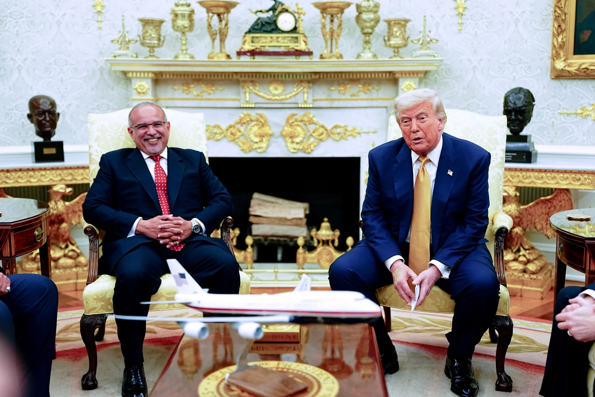 週三,巴林王儲薩勒曼·本·哈馬德·阿勒哈利法(左)與美國總統唐納德·特朗普在華盛頓白宮橢圓形辦公室會晤。