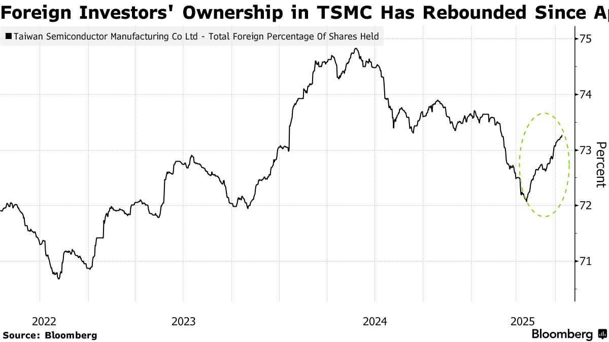 人工智能主題的復甦正助推台積電股價,今年早些時候該股曾因市場對其美國投資高成本的擔憂及DeepSeek對高端芯片需求影響的憂慮而承壓,而台積電在該領域佔據主導地位。
