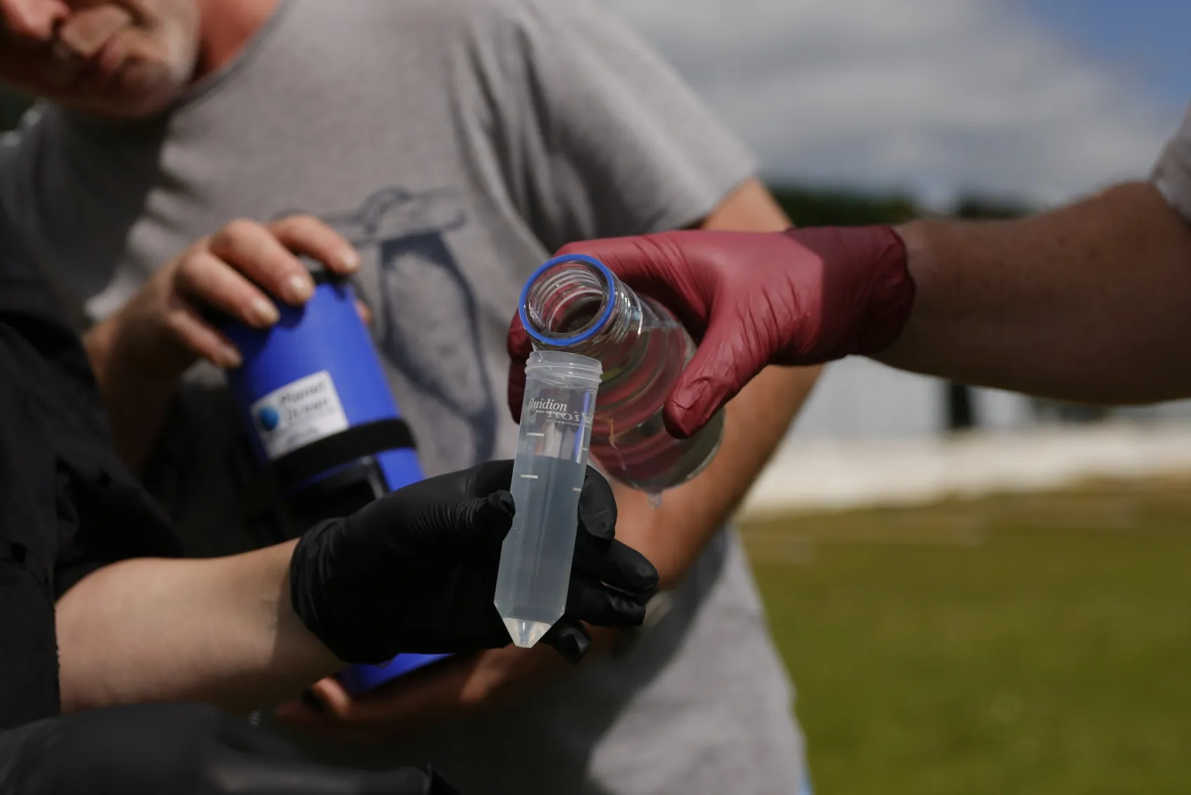 公民科學家在泰晤士河畔亨利鎮從泰晤士河採集水樣,進行每日大腸桿菌檢測。攝影師:薇薇安·萬/彭博社他遇到的其中一位人士吉爾斯·布里斯托認為,坎利夫的努力是真誠的,但需要更有雄心。“他想做好工作,”反污水衝浪者組織的首席執行官説。