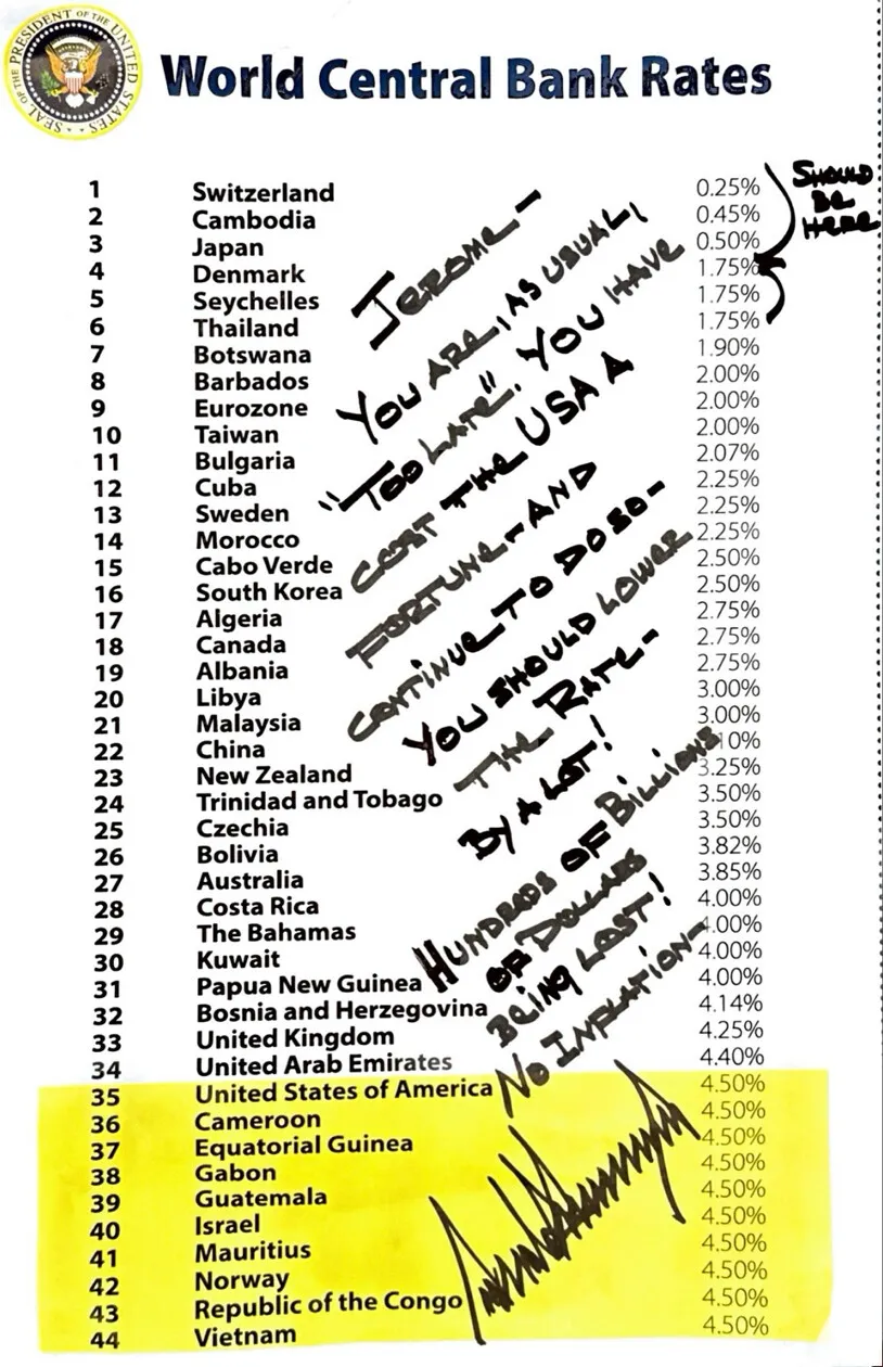 他的核心論點是:鑑於美國經濟強勁,利率理應保持低位。這正是他持續批評美聯儲主席傑羅姆·鮑威爾今年未降息的根本原因。
