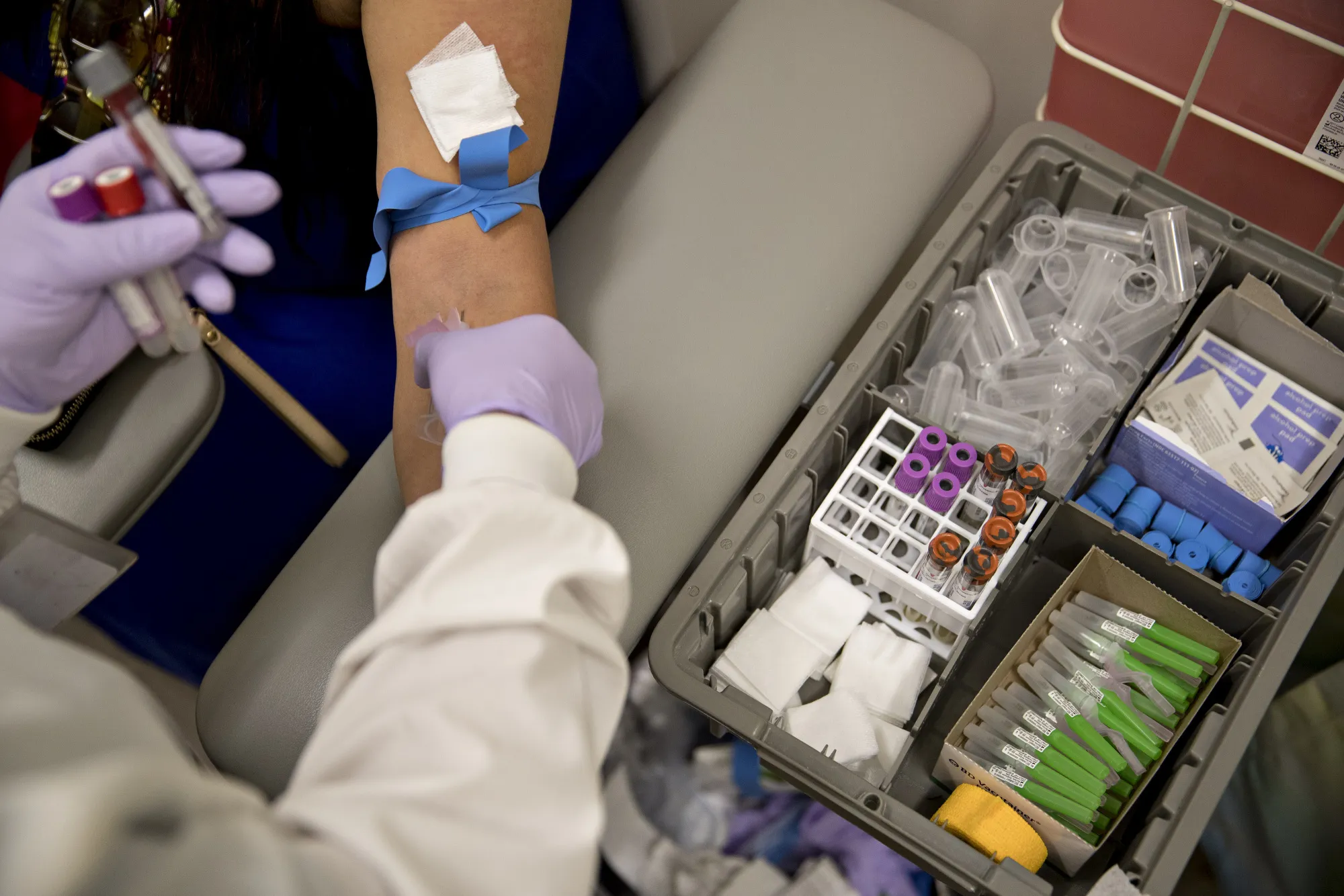 馬里蘭州蓋瑟斯堡一家健康中心內,患者正在接受血液檢測。