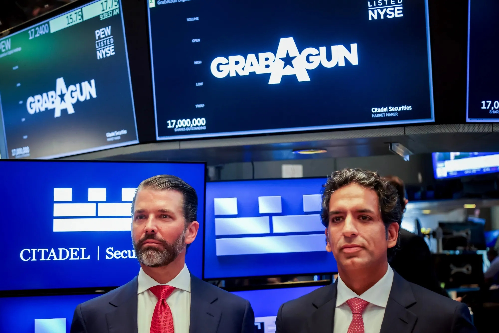 週三,小唐納德·特朗普(左)與奧米德·馬利克在紐約證券交易所交易大廳。