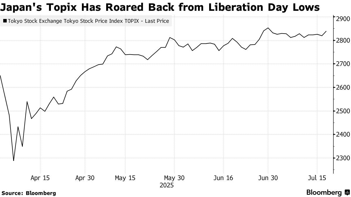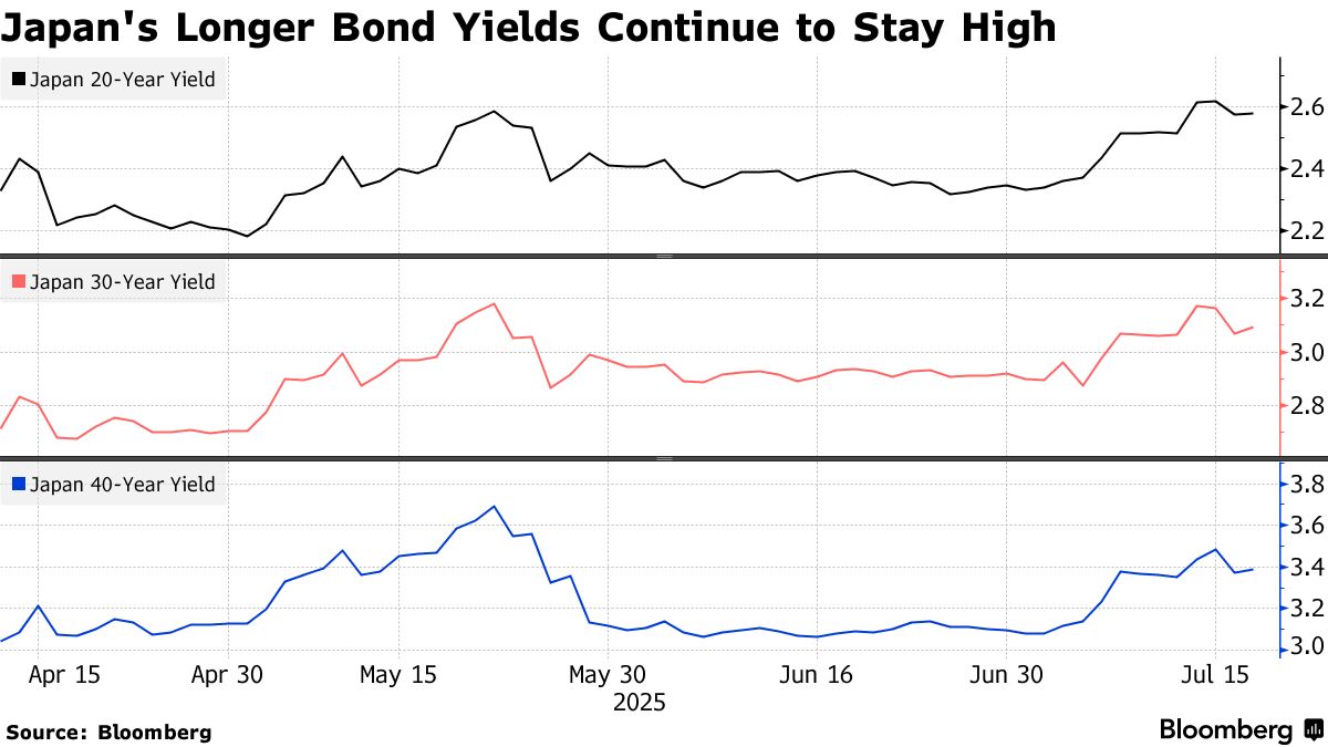 日本貿易前景也岌岌可危,隨着特朗普對出口商品加徵25%關税的8月1日截止日期迫近。投資者擔憂石破茂若敗選可能導致雙邊關税談判脱軌,衝擊汽車製造商等出口企業股價,並可能對日元構成壓力。