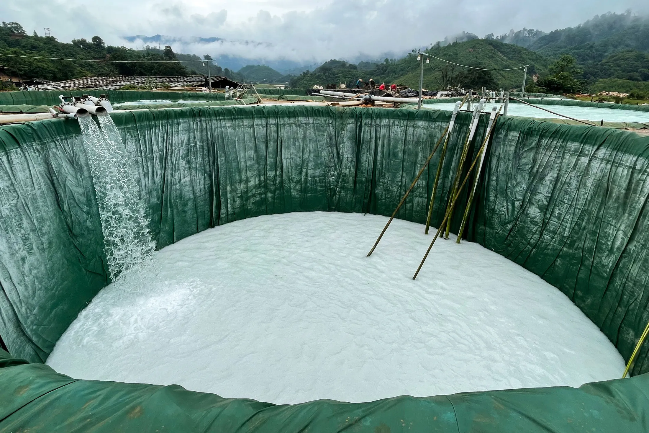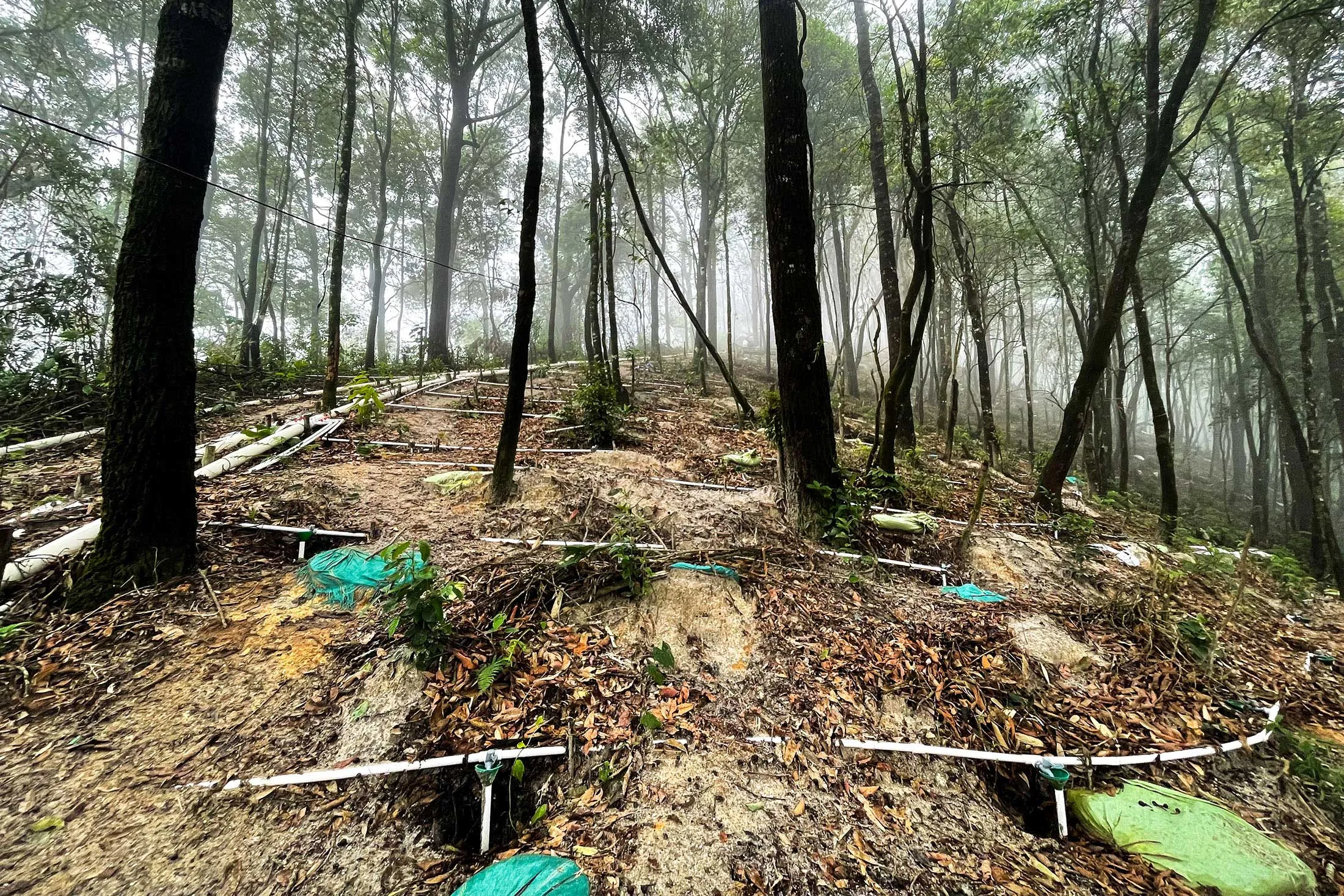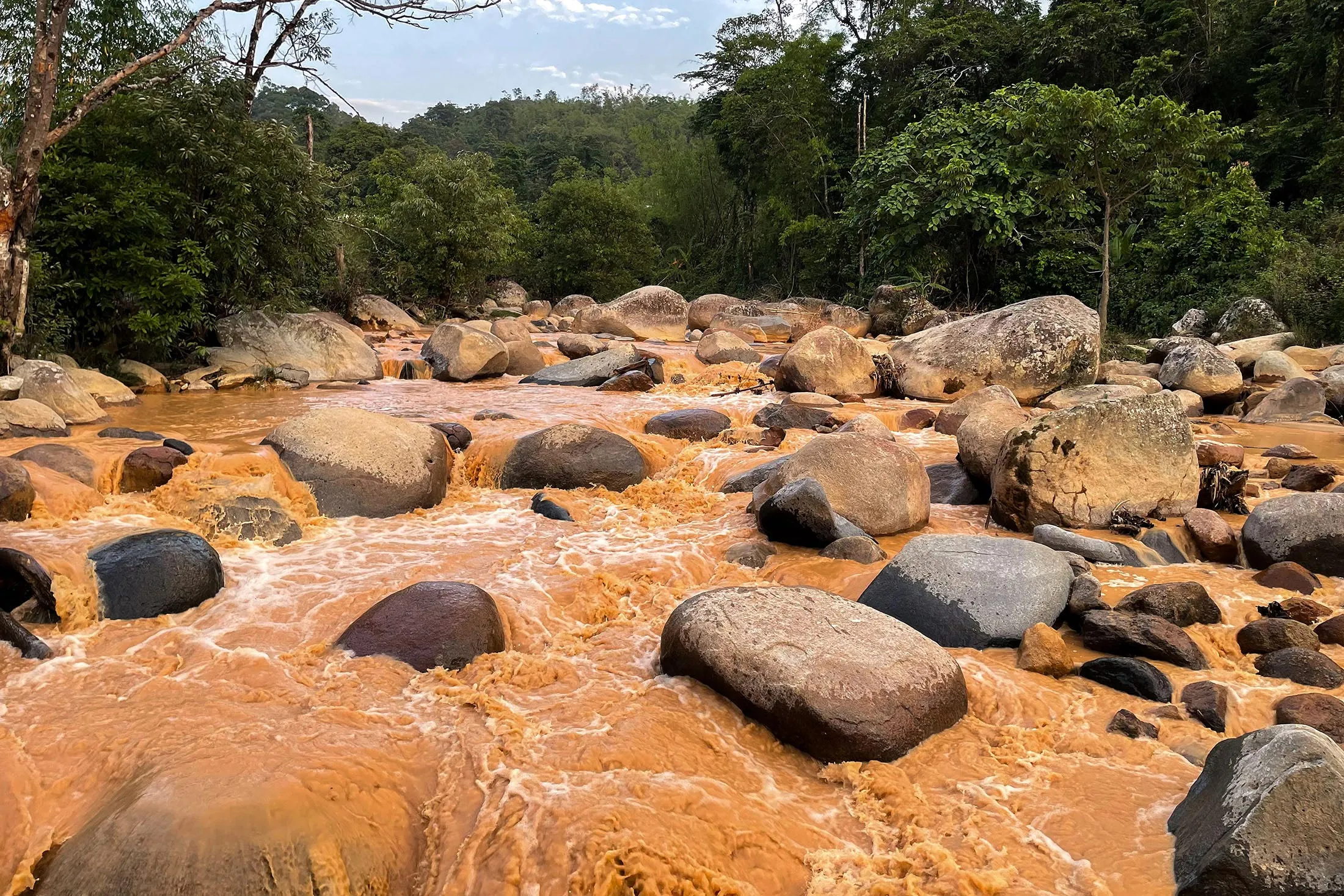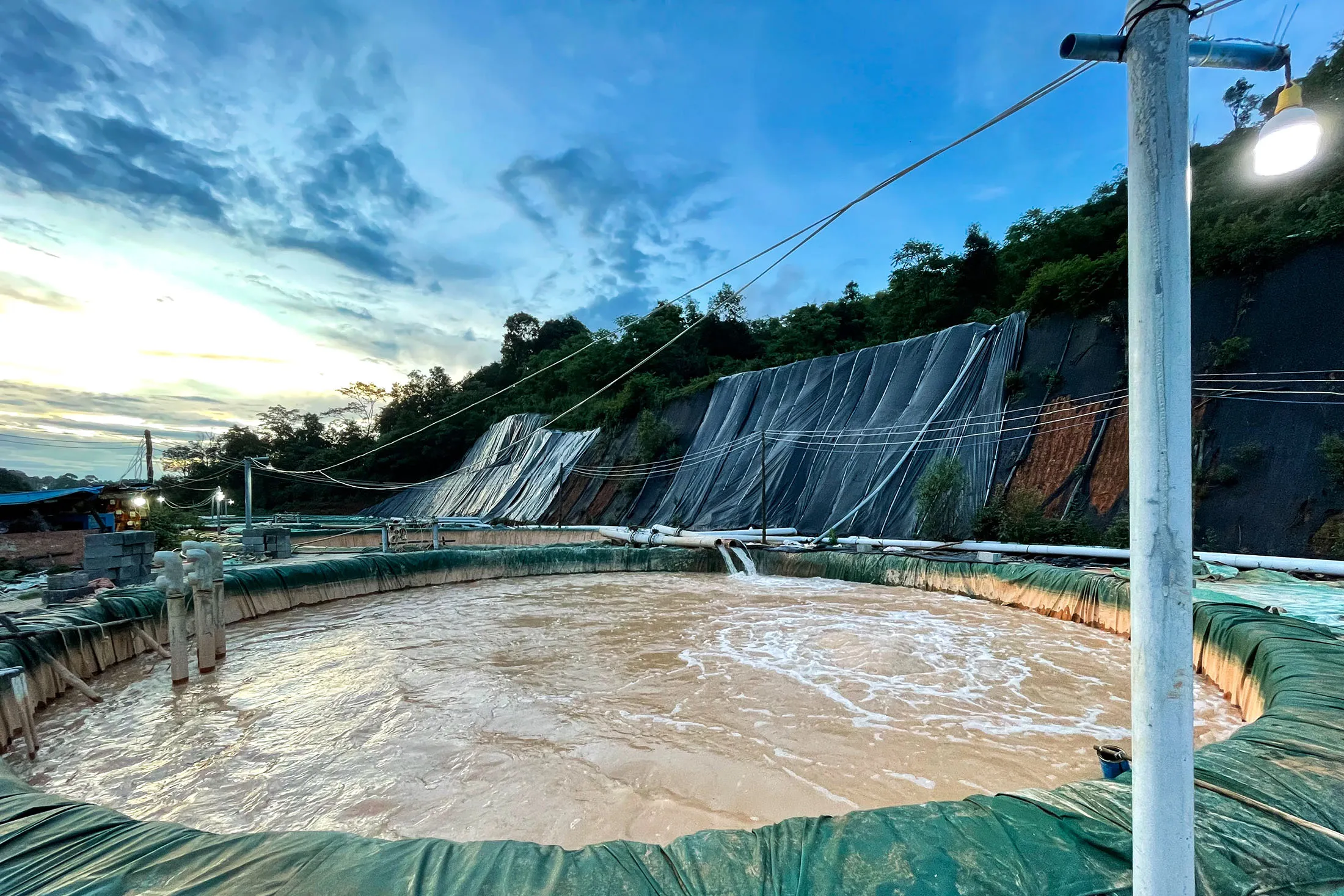 山坡上的管道網絡將浸出劑滴入土壤中。照片:彭博社在4月發表的一項研究中,泰國那黎宣大學的研究人員分析了在邦瓦周圍採集的水和土壤樣本,發現採礦造成的"嚴重污染”,包括"高得驚人的"鏑、鋱和有毒重金屬濃度。他們警告説,這些地方的水"未經廣泛處理完全不適合人類飲用、灌溉或養魚”。毫不奇怪,工人也可能面臨重大風險;長期接觸高濃度的鏑和鋱會導致肺部阻塞和癌症。然而,發佈在中國社交媒體平台抖音上的視頻顯示,克欽邦的礦工赤腳踩踏稀土泥漿槽。