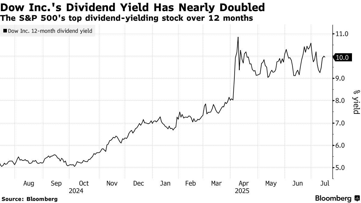 在收益率最高的公司中,化工企業陶氏公司為投資者提供了近10%的12個月股息收益率——幾乎是去年支付水平的兩倍。