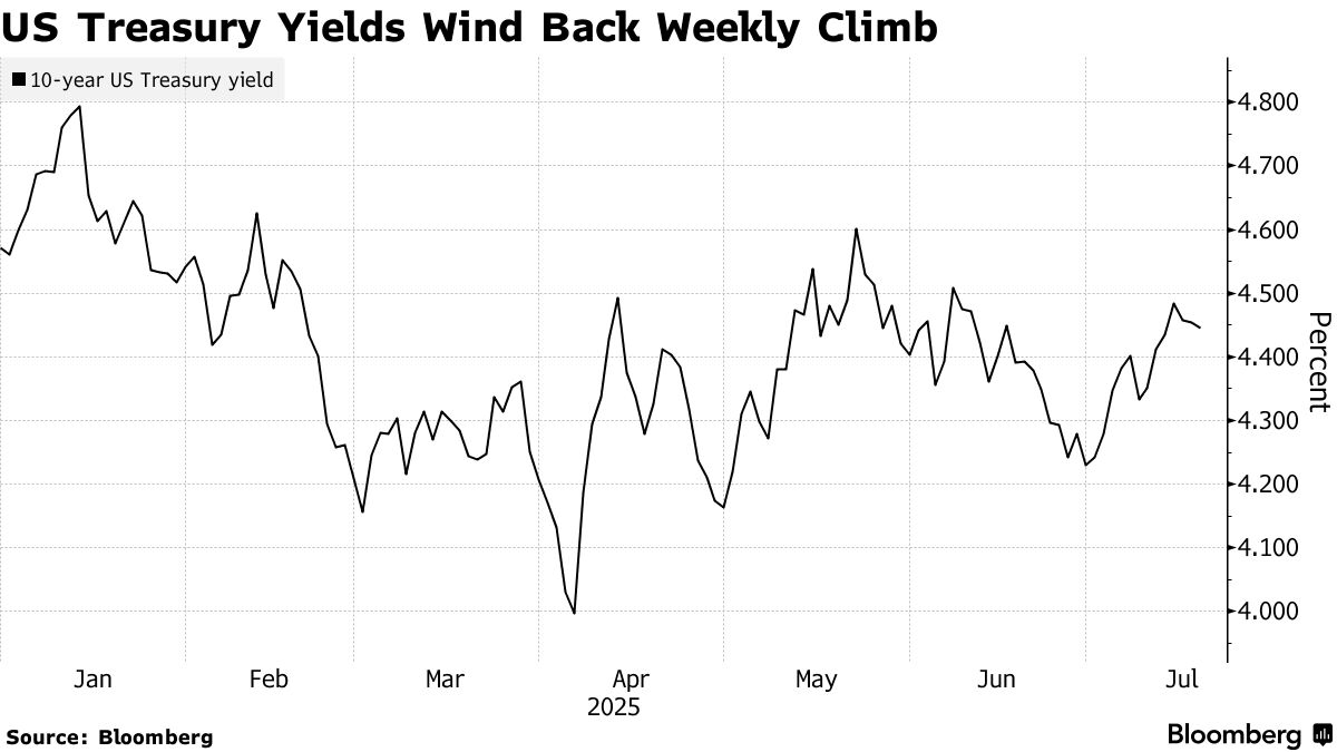 對國債而言,這是波動劇烈的一週。30年期收益率自5月以來首次突破5%,因持續的通脹壓力促使交易員降低了對9月降息的押注,而關於前總統特朗普可能解僱美聯儲主席傑羅姆·鮑威爾的猜測也令市場不安。