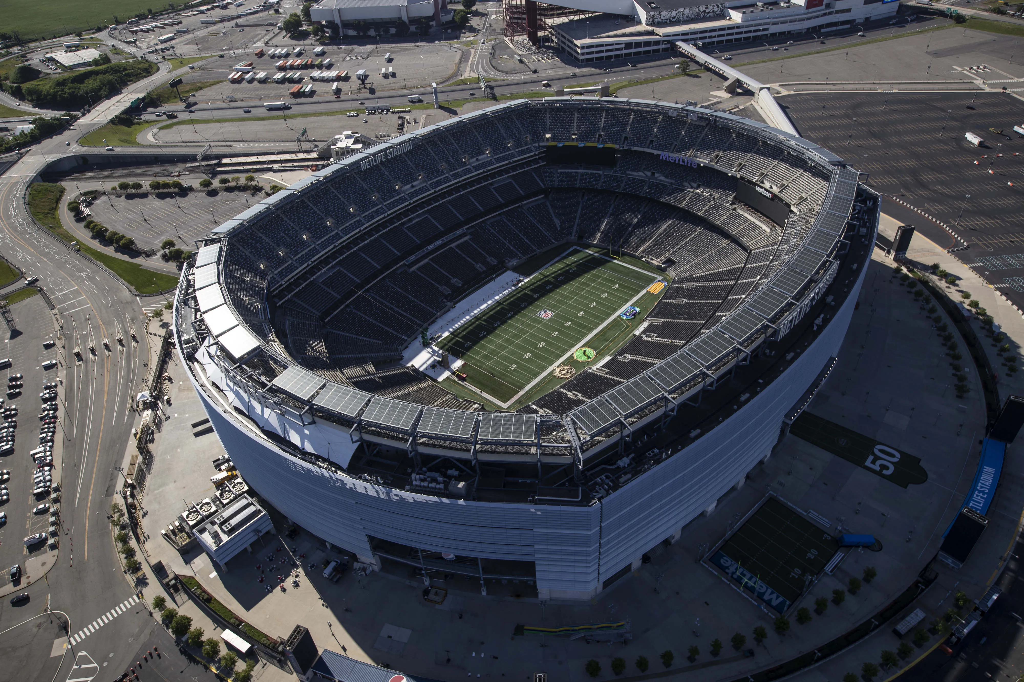 新澤西州東盧瑟福的大都會人壽體育場,計劃作為2026年國際足聯世界盃決賽場地。攝影師:維克托·J·布魯/彭博社聯邦航空管理局通過其遠程識別系統將無人機納入國家空域系統——一個包含管制與非管制空域及設施的網絡。