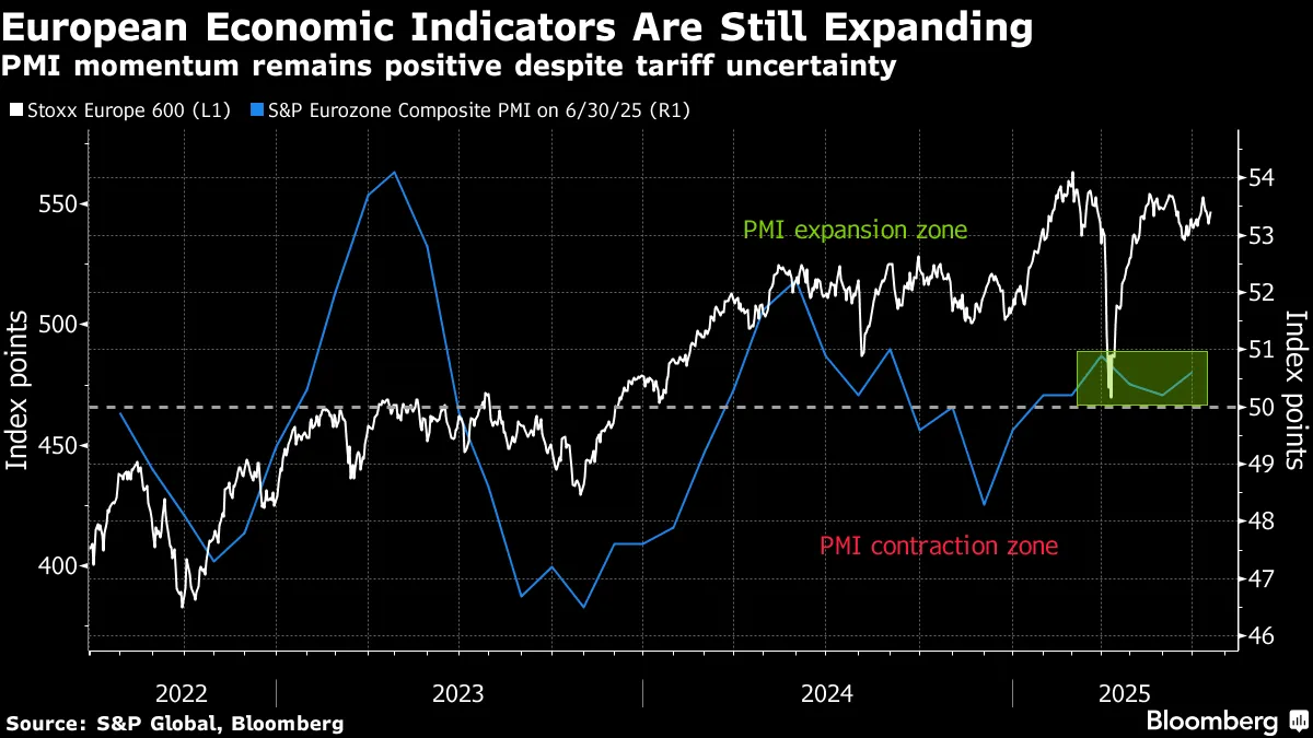 由於投資者對美國關税談判進展保持警惕,歐洲基準指數7月走勢震盪。該指數目前較3月創下的歷史高點低約3%。