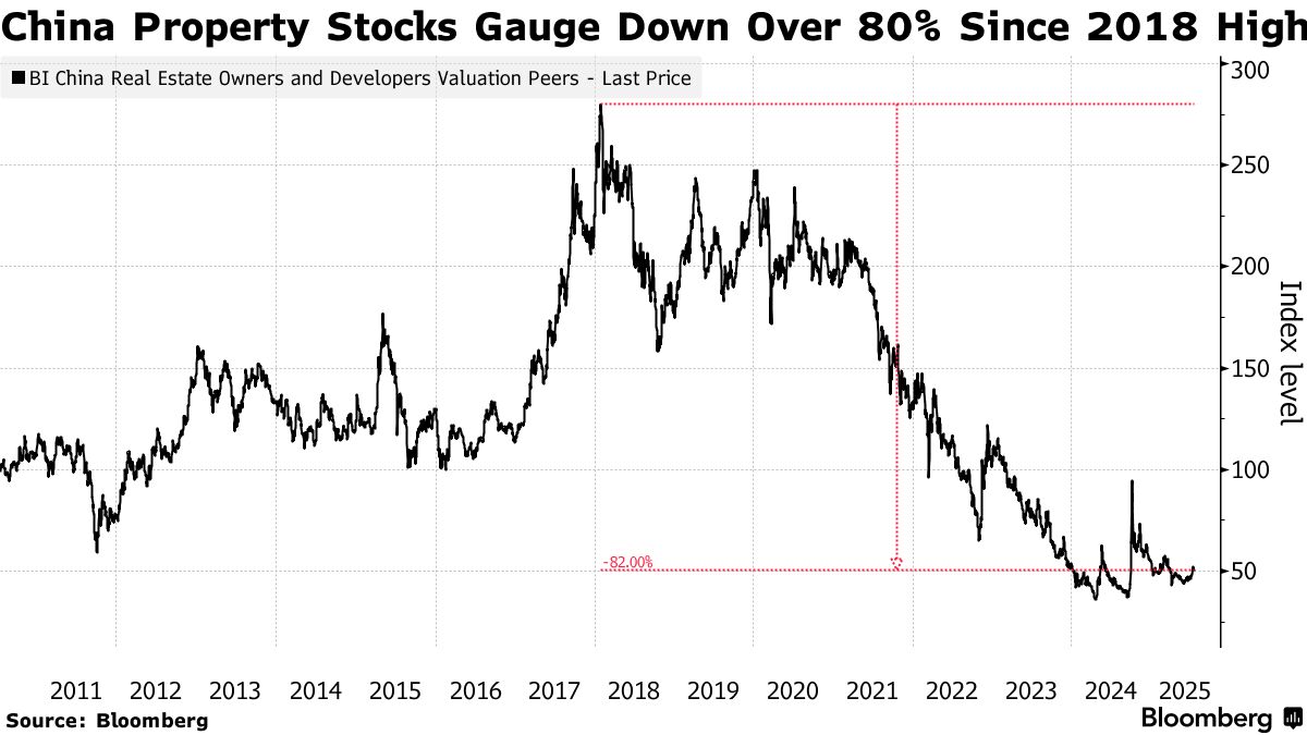在週二的關鍵會議未能出台任何振興行業的具體措施後,開發商股票指數創下四個月來最大單週跌幅。摩根士丹利表示,由於優於預期的經濟增長數據削弱了短期內出台刺激政策的必要性,第三季度房地產銷售可能持續疲軟。
