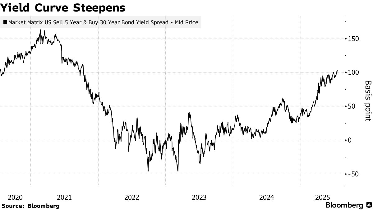 理論依據是,新任美聯儲主席更有可能順應特朗普降低利率的遊説,這將壓低短期收益率。寬鬆的貨幣政策,加上央行獨立性可能喪失的預期,反過來可能引發通脹擔憂,推高長期債券收益率。