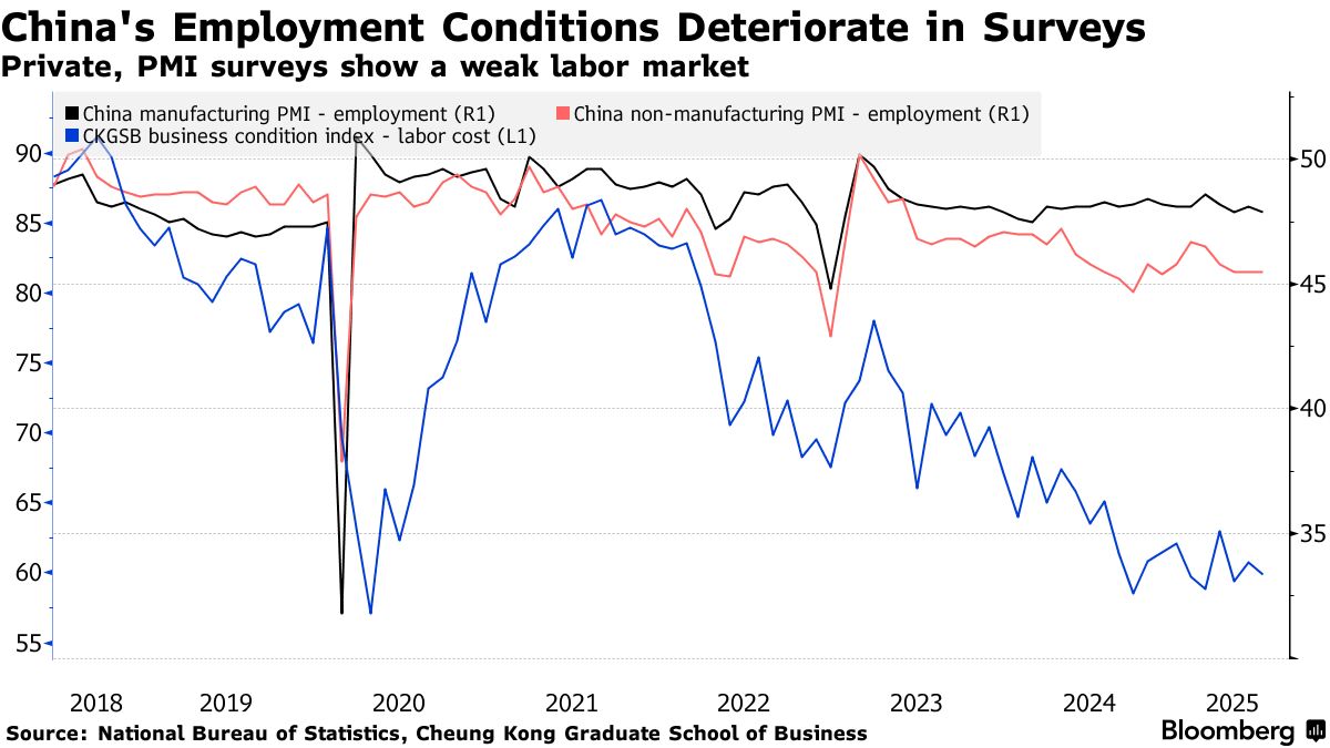 “我們的工資追蹤指標表明,疲軟的工資增長可能對2025年下半年消費增長構成阻力,“經濟學家們表示。“我們預計下半年將出台漸進且有針對性的寬鬆措施,以緩解勞動力市場壓力。”