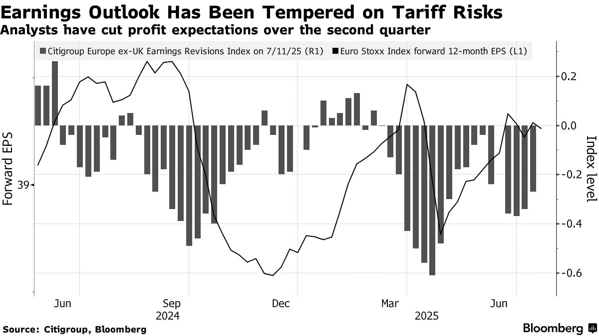 根據彭博行業研究彙編的數據,分析師預計MSCI歐洲成分股第二季度盈利將下降4.8%,這將是2024年初以來最大同比跌幅。