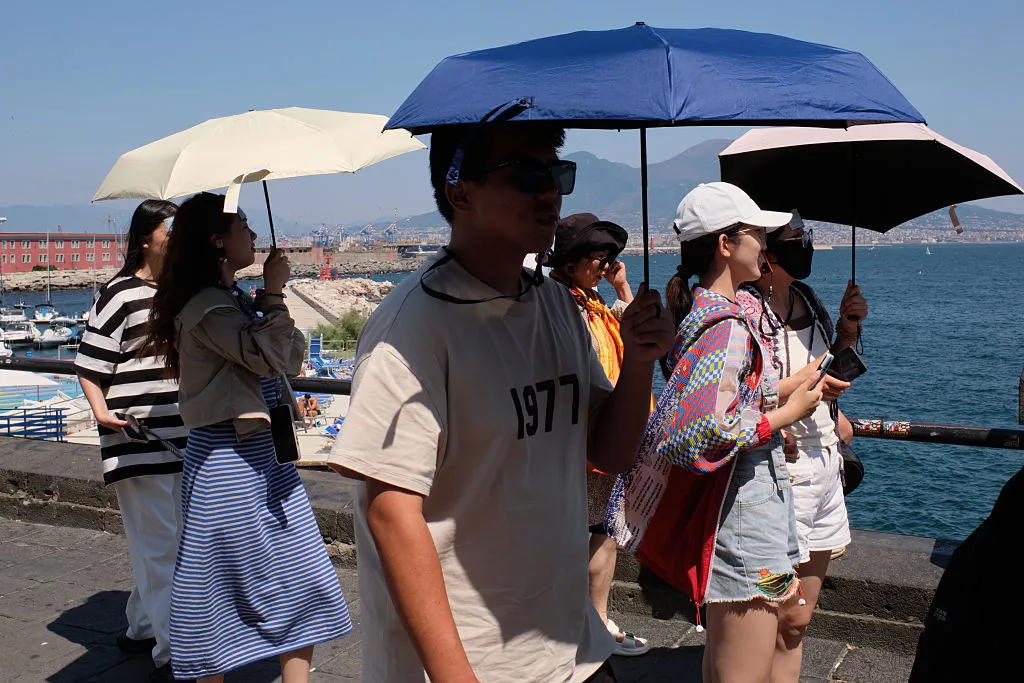 7月20日,那不勒斯市民在非洲熱浪侵襲期間遮陽避暑。