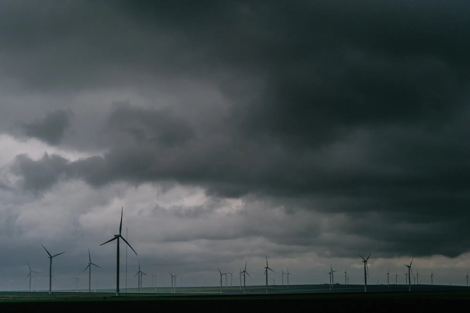 羅馬尼亞康斯坦察,由CEZ集團運營的Fantanele-Cogealac風電場,風力渦輪機上空烏雲密佈。