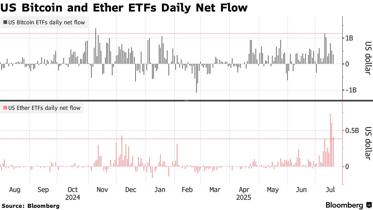 攝影:Paul Yeung/彭博社在華盛頓一系列加速加密貨幣融入受監管金融體系的政策推動下,近4萬億美元規模的市場上正席捲着持續高漲的樂觀情緒。具有里程碑意義的穩定幣法案通過及更廣泛的立法勢頭,為行業注入了新的合法性,推高了數字資產價格並重燃了風險偏好。