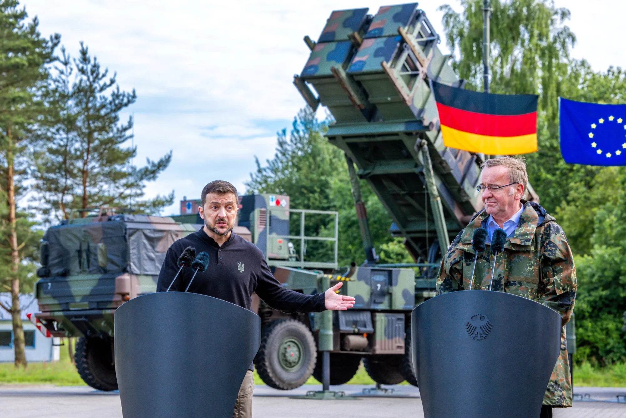 2024年,弗拉基米爾·澤連斯基(左)與鮑里斯·皮斯托裏烏斯在德國參觀愛國者導彈發射車。攝影師:延斯·布特納/法新社/蓋蒂圖片社另一方面,英國和德國計劃承諾向烏克蘭提供新防空系統,同時倫敦正推動一項"50天行動"以武裝基輔並迫使普京回到談判桌。國防大臣約翰·希利與皮斯托裏烏斯通過視頻會議共同主持了聯絡小組會議。