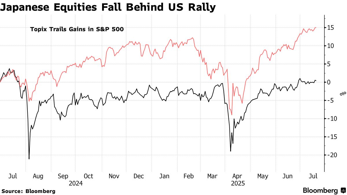 儘管日本基準東證股價指數已從4月美國總統特朗普加徵關税後的暴跌中反彈,但仍遠低於去年年中創下的歷史高點。