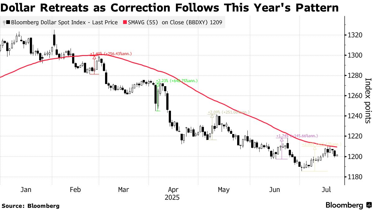 多重宏觀催化劑正在發揮作用。交易員正密切關注美聯儲7月會議可能釋放的鴿派信號,同時擔憂華盛頓政策的不確定性及央行獨立性。新的關税公告和美國經濟數據持續疲軟可能進一步削弱美元人氣。