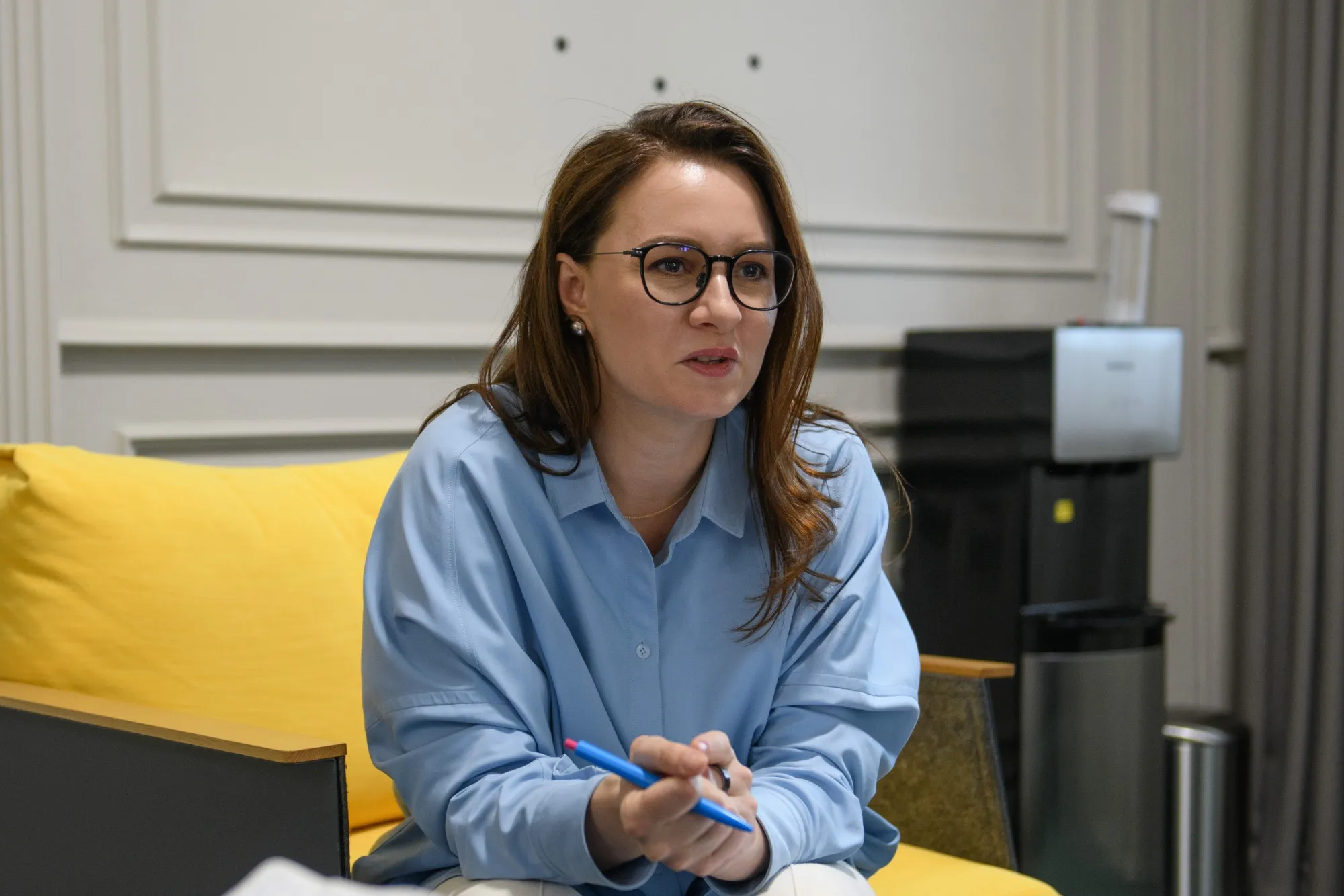 2025年7月20日週日,烏克蘭總理尤利婭·斯維裏登科在基輔接受採訪。