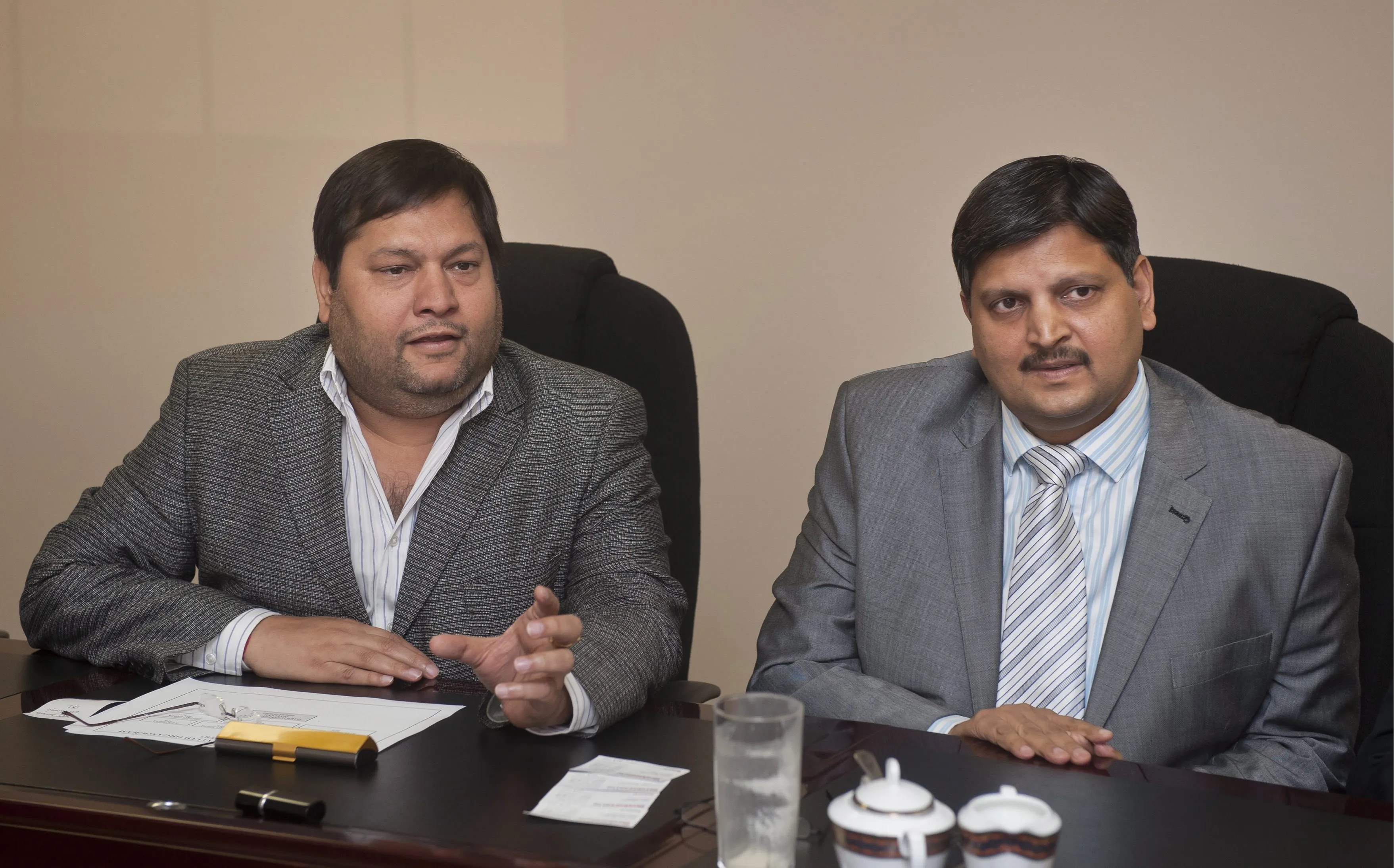 2011年約翰內斯堡的阿賈伊·古普塔(左)與阿圖爾·古普塔。攝影師:馬丁·羅德斯/商業日報/蓋蒂圖片社在查看豪宅時,一個似乎被強行打開的保險箱、成箱的處方藥、香料以及櫥櫃裏堆積如山的餐具表明古普塔家族是匆忙離開南非的。