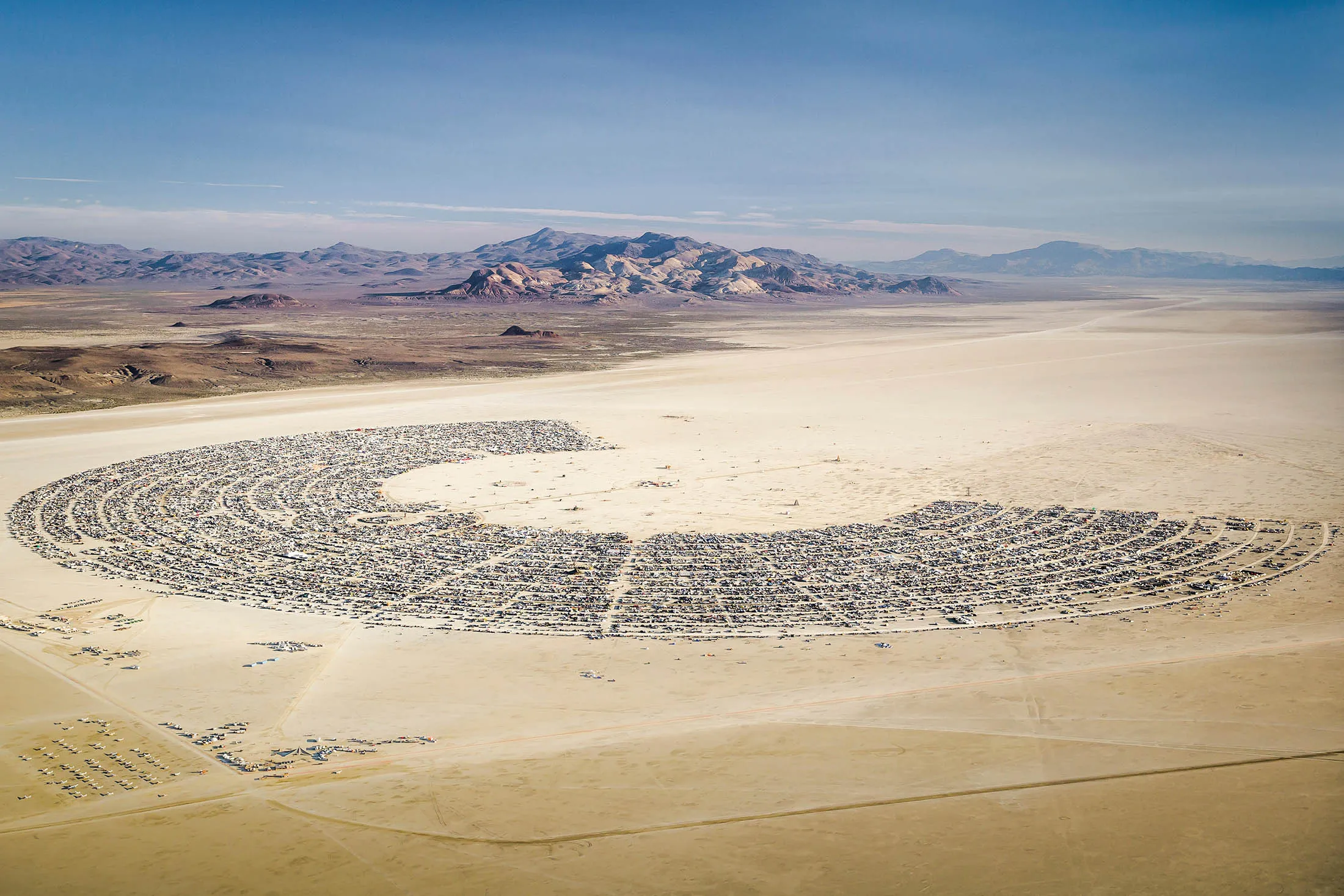 2015年火人節第二天黑石城的航拍畫面。攝影:Scott London/Alamy2024年10月,古德爾發表了一封公開信,標題為“轉折點”——近2000字闡述了火人節面臨的財務困境及其作為“全球向善力量”的願景。她提到了災難援助、可持續發展倡議和地區活動網絡,並呼籲人們每月捐贈20美元。“世界比以往任何時候都更需要我們所提供的,”她寫道。