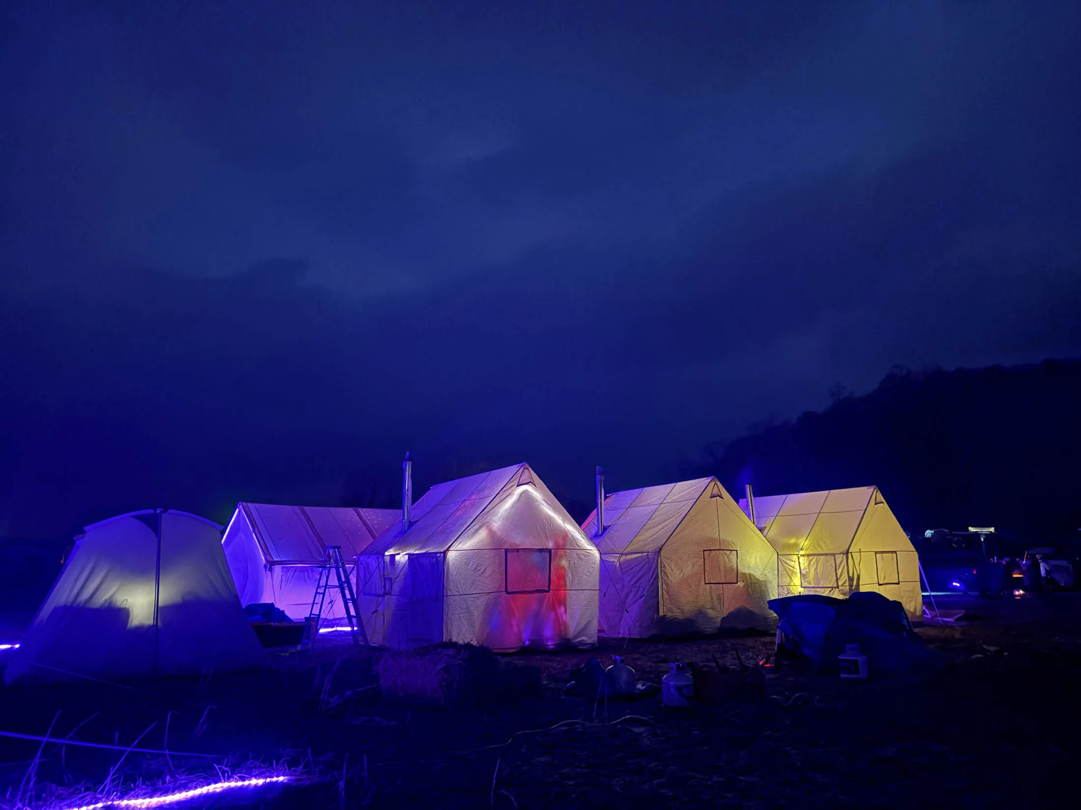 霜燃節的參與者們分散在西弗吉尼亞州寒冷泥濘的山頂上的便攜式住所中。照片:泰德·阿爾康長期參與者卡琳娜·帕吉特批評主節:“當那些‘即插即用’營地出現時,情況就開始走下坡路。”丈夫的自殺讓她在這個社區中尋求到了支持。同樣,來自匹茲堡的銷售員哈爾·霍姆勒在離婚後從“火人節”中找到了力量——如今他參加多達八次地區性活動。對他來説,門票價格可以接受——與國家公園的露營費用相當。古德爾斯的薪水(2023年略低於40萬美元)也沒有讓他感到不適:他僱主的CEO收入2000萬美元。“這是個資本主義世界,”他説。