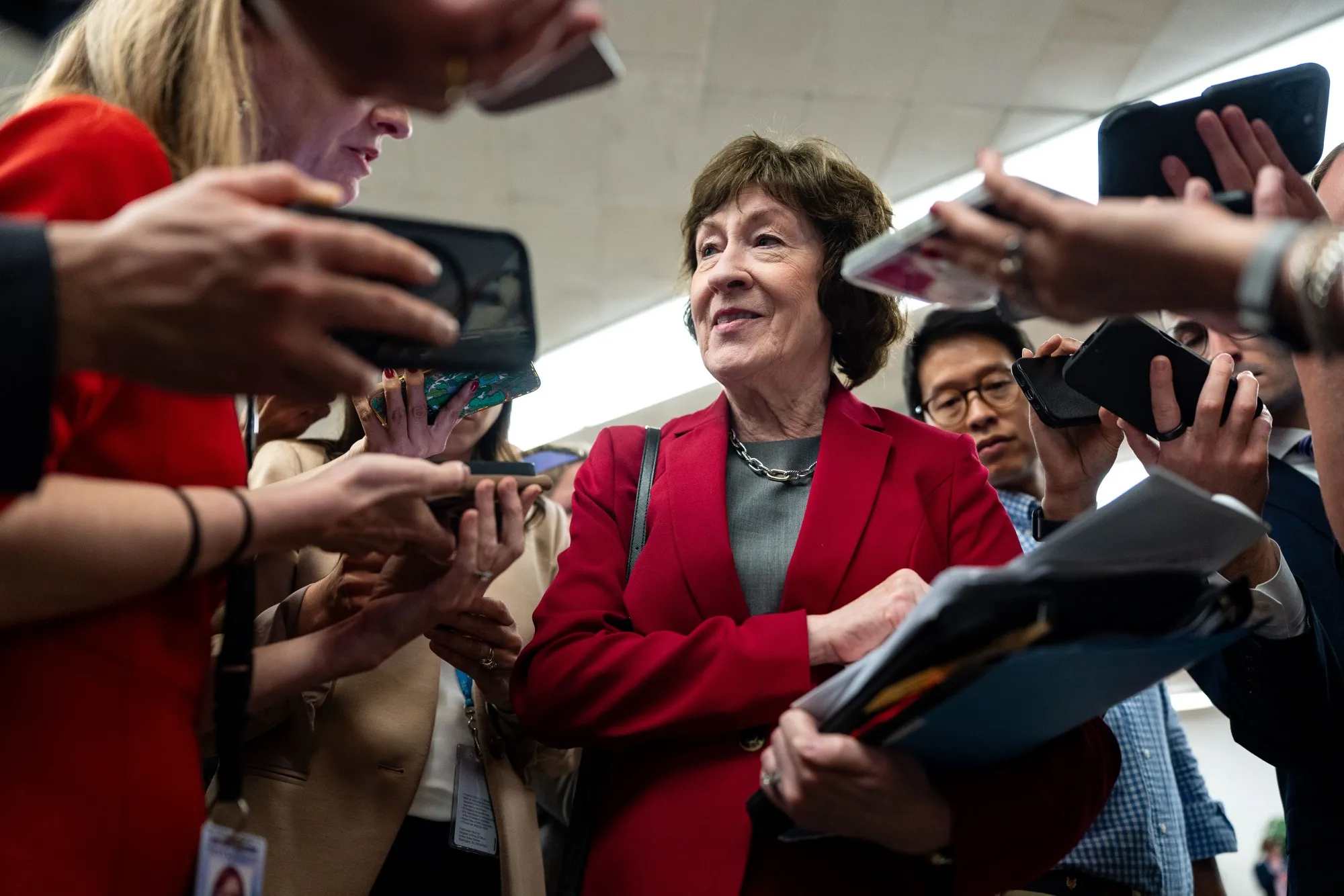 瀏覽民主黨參議院競選委員會的網站,似乎民主黨認為可以通過將柯林斯描繪成特朗普的盟友和幫兇來削弱她。儘管她曾投票反對《一攬子美麗法案》——總統的税收與支出法案——以及一項取消了90億美元已批准聯邦支出的撤銷撥款計劃。(該撤銷計劃大幅削減了對公共廣播公司和全國公共廣播電台的資助,這兩家機構的電台和節目在緬因州等農村小州被廣泛使用。)