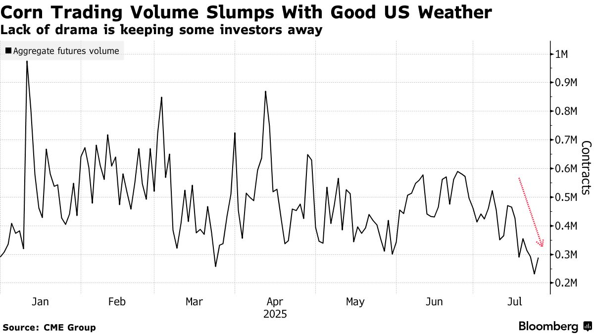 攝影師:本傑明·羅伯茨/彭博社受美國中西部降雨預報提振產量前景影響,農產品期貨本週持續走低。當前投資者本就持看空態度,而有利天氣更令市場承壓。