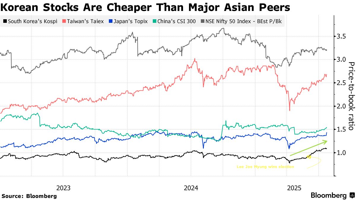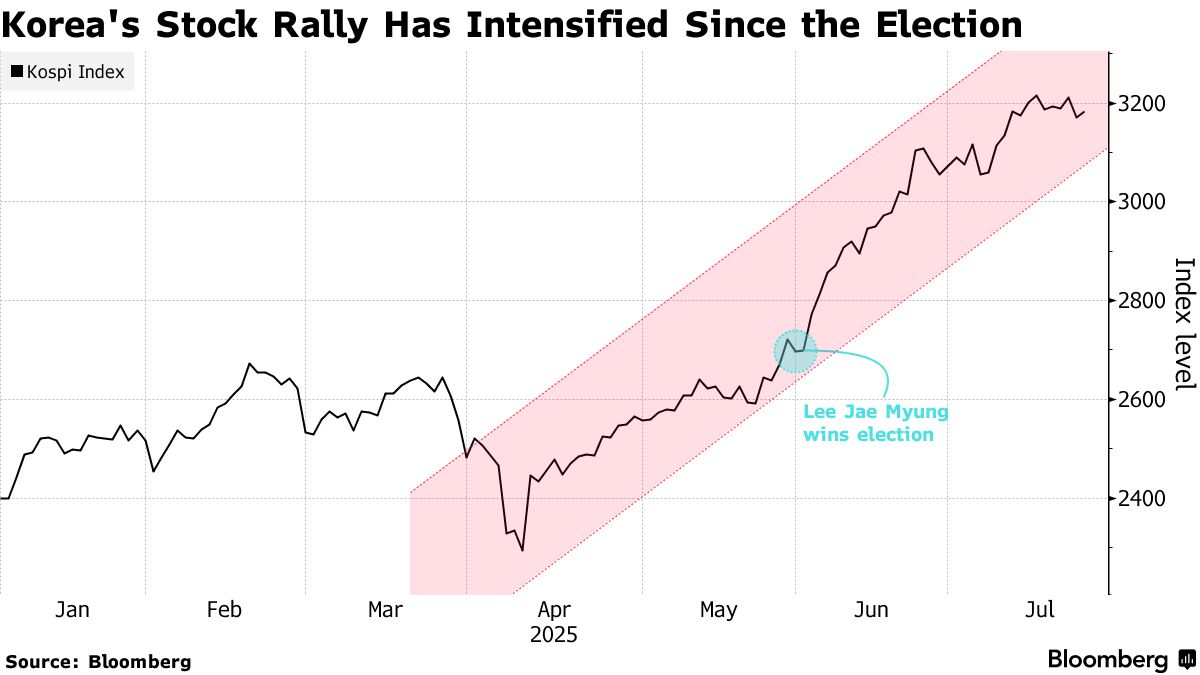 韓國當局一直試圖複製日本的成功經驗——該國通過推動企業改革提升了估值並催生全球領先的股市上漲。隨着新任總統李在明將提高治理標準和改善股市回報列為其首要任務,市場對於韓國認真解決所謂"韓國折價"問題的樂觀情緒日益增強。