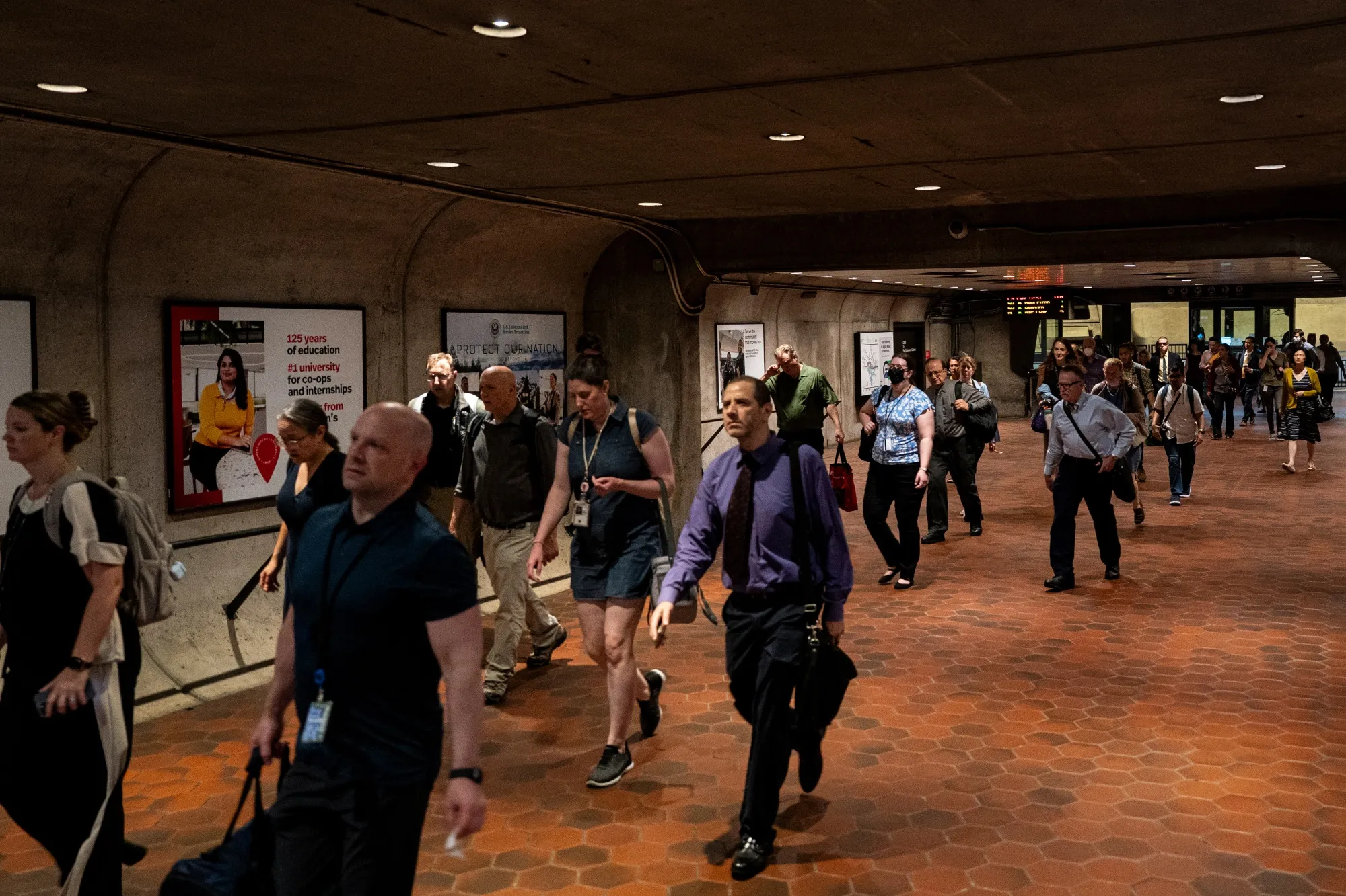 7月21日,通勤者抵達華盛頓特區聯邦三角地鐵站。