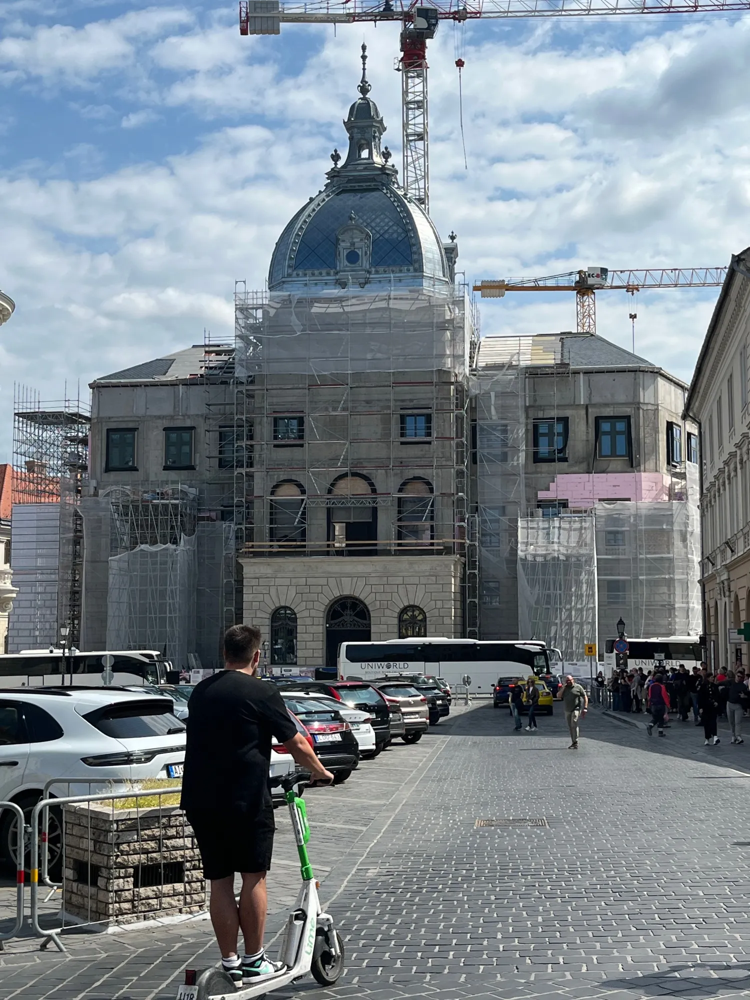 當匈牙利政府在城堡山復建早已消失的建築時,山下城區現存的歷史遺產正面臨危機。在多瑙河對岸的商業中心佩斯區,一些投資不足的區域裏,修繕一新的建築與宏偉的衰敗樓宇比鄰而居——這些建築若在其他城市本可成為驕傲。