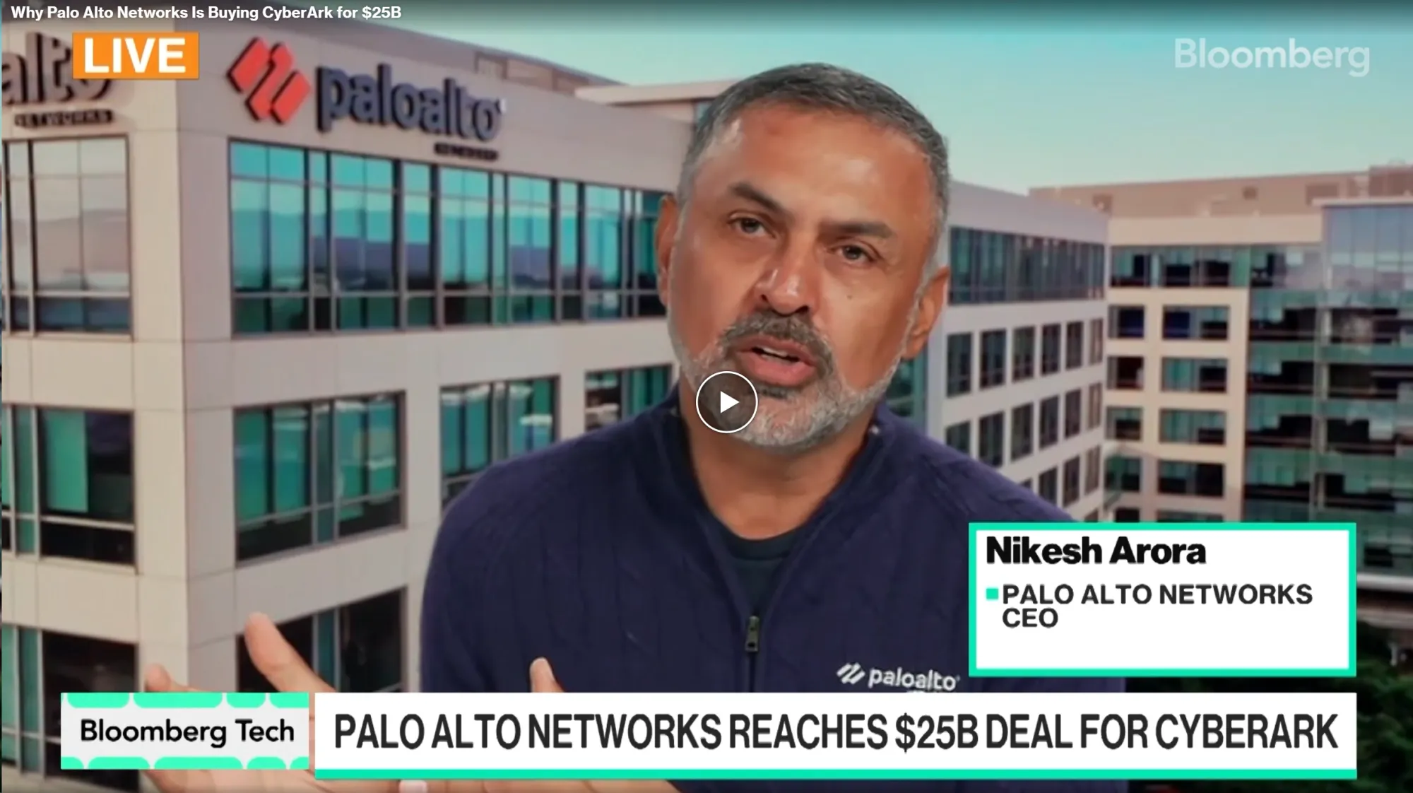 Palo Alto Networks首席執行官尼凱什·阿羅拉和CyberArk執行主席烏迪·莫卡迪加入彭博科技節目,討論Palo Alto以250億美元收購CyberArk背後的戰略。