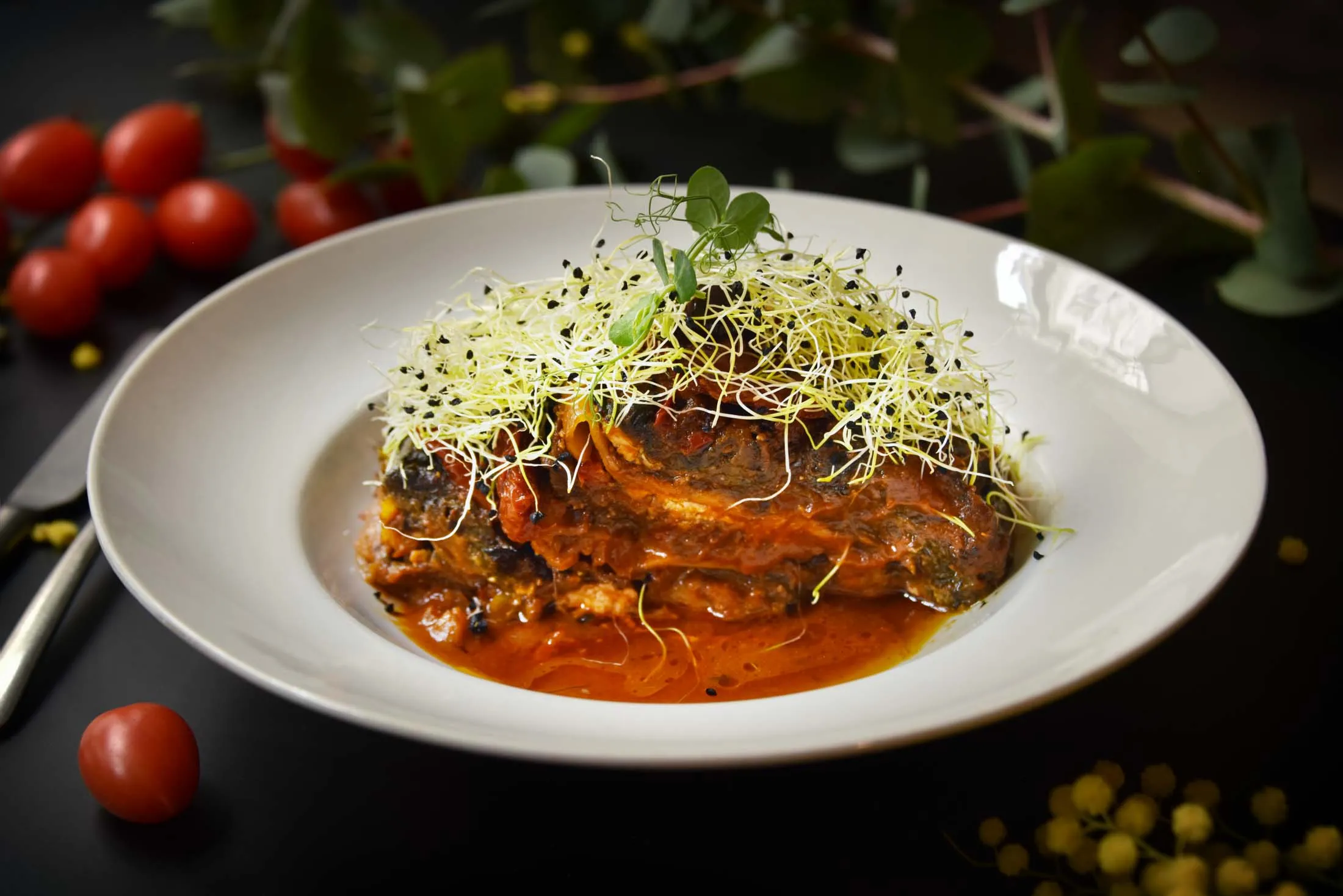 Persil餐廳的千層麪以層層茄子和烤番茄為特色。攝影師:李麗·羅斯 Persil,第11區