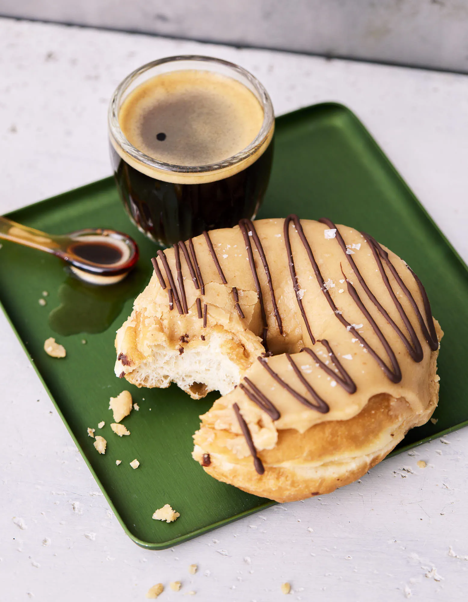 “我們不得不遠赴巴黎才能吃到最棒的甜甜圈,”Bobby説,他認為這些甜甜圈勝過紐約的任何純素選擇,“或許也是我吃過最好的。”Myki走進瑪黑區的Boneshaker,想看看是否有純素甜甜圈,驚喜地發現“所有甜甜圈都是純素的”。這家小巧的麪包店裝飾着木質小桌和80年代朋克風的霓虹粉與斑馬紋,所有產品100%植物基,售價4至6歐元。它們出自美國出生、藍帶廚藝學院培訓的糕點師Amanda Bankert之手,她於2015年開設了這家店。Myki的最愛:檸檬凝乳椰子口味的“No Sleep Till Brooklyn”和淋有巧克力醬的花生醬釉面“Baby Got Back”。Bobby則選擇了馬達加斯加波旁香草豆釉配燕麥奶的香草口味。“覆盆子釉配檸檬的那款也很特別,”他説,“每一款都是。”