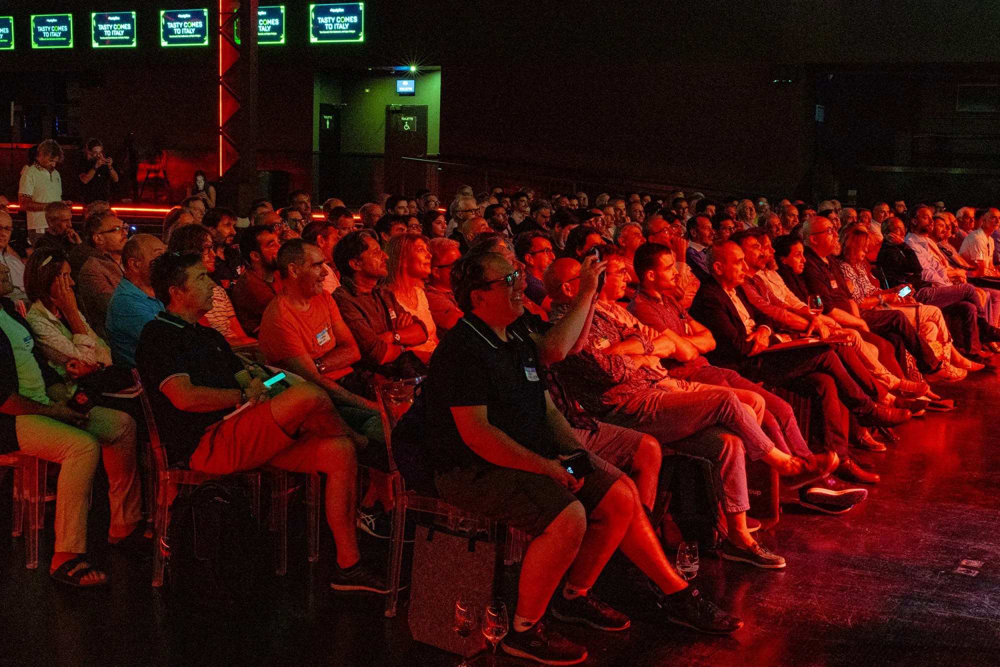 米蘭tastytrade活動現場,觀眾觀看即時交易。攝影師:戴維德·布倫納### 更多彭博資訊