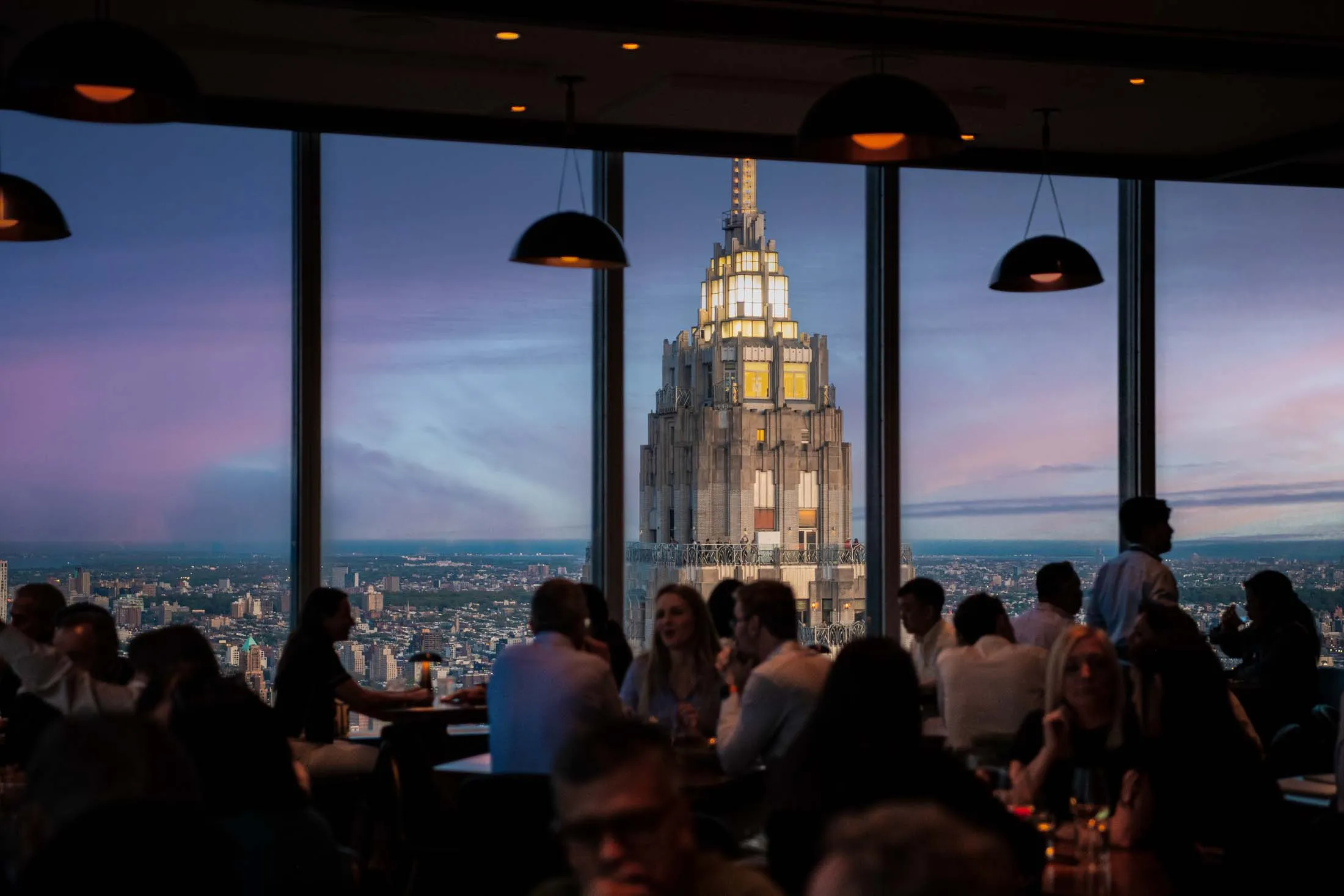 城市全景是曼哈塔餐廳的主要賣點。攝影師:馬克斯·弗拉託乘電梯直達60層,抵達這家精緻典雅的曼哈塔餐廳(趕時間的食客不必擔心,電梯速度很快)。對於同在樓內辦公的安聯保險、美國國際集團和倫敦證券交易所集團員工而言,來這裏用餐更是近水樓台。新任行政主廚米歇爾·布羅戈尼推出的新菜包括季節蘿蔔配鰤魚刺身、新鮮玉米佩科裏諾奶酪餛飩,以及午餐時段暢銷的麴黴洋葱乾式熟成漢堡。這家由聯合廣場餐飲集團運營的餐廳不僅是商務人士的聚集地、下班後的飲酒去處,更是舉辦各類慶祝活動和招待外地訪客的理想場所。在這棟地標建築裏俯瞰紐約全景,實在令人難以拒絕。自由街28號60層;manhattarestaurant.com